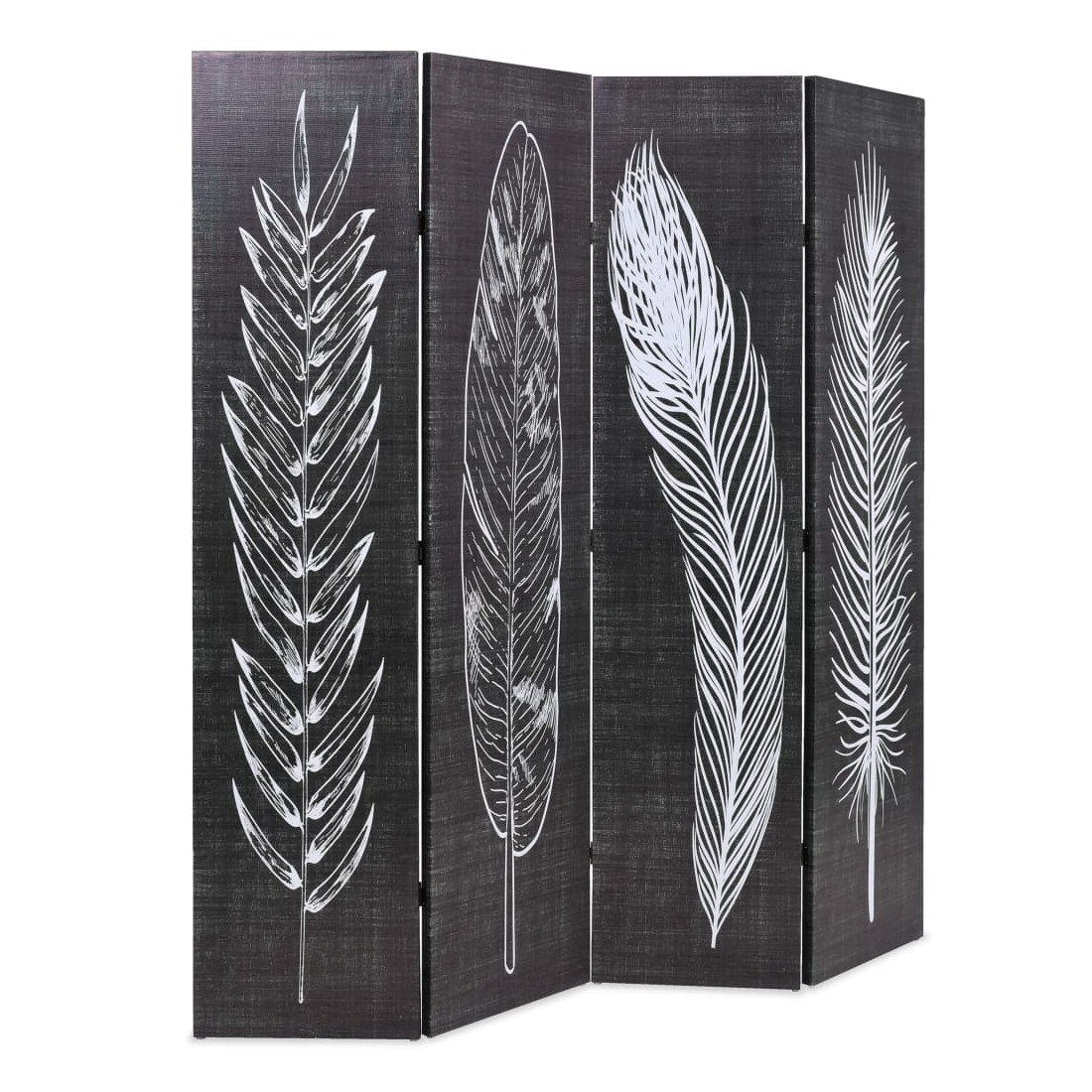 Cette cloison de séparation de 160 cm de largeur et de 170 cm de hauteur est idéale pour créer un espace intime ou séparer une partie de la chambre. Elle ajoutera une touche pratique et décorative à votre chambre à coucher, salon ou bureau. Le paravent a un cadre en bois solide et est recouvert de toile résistante qui présente une impression de plumes sophistiquée des deux côtés et ajoutera une touche de classe à votre pièce. La cloison de séparation peut également être facilement repliée pour économiser de l'espace lorsqu'elle n'est pas utilisée.