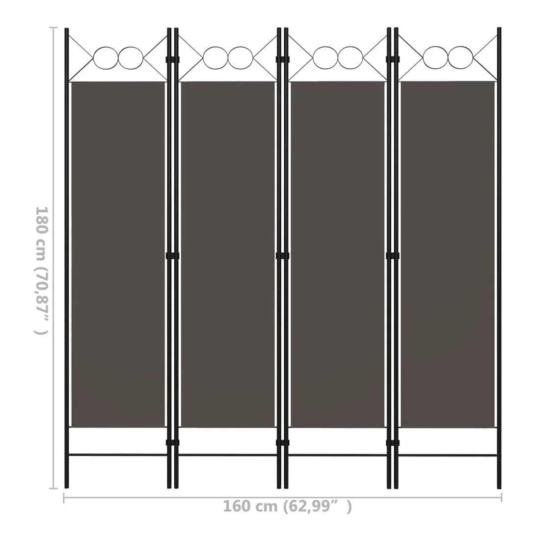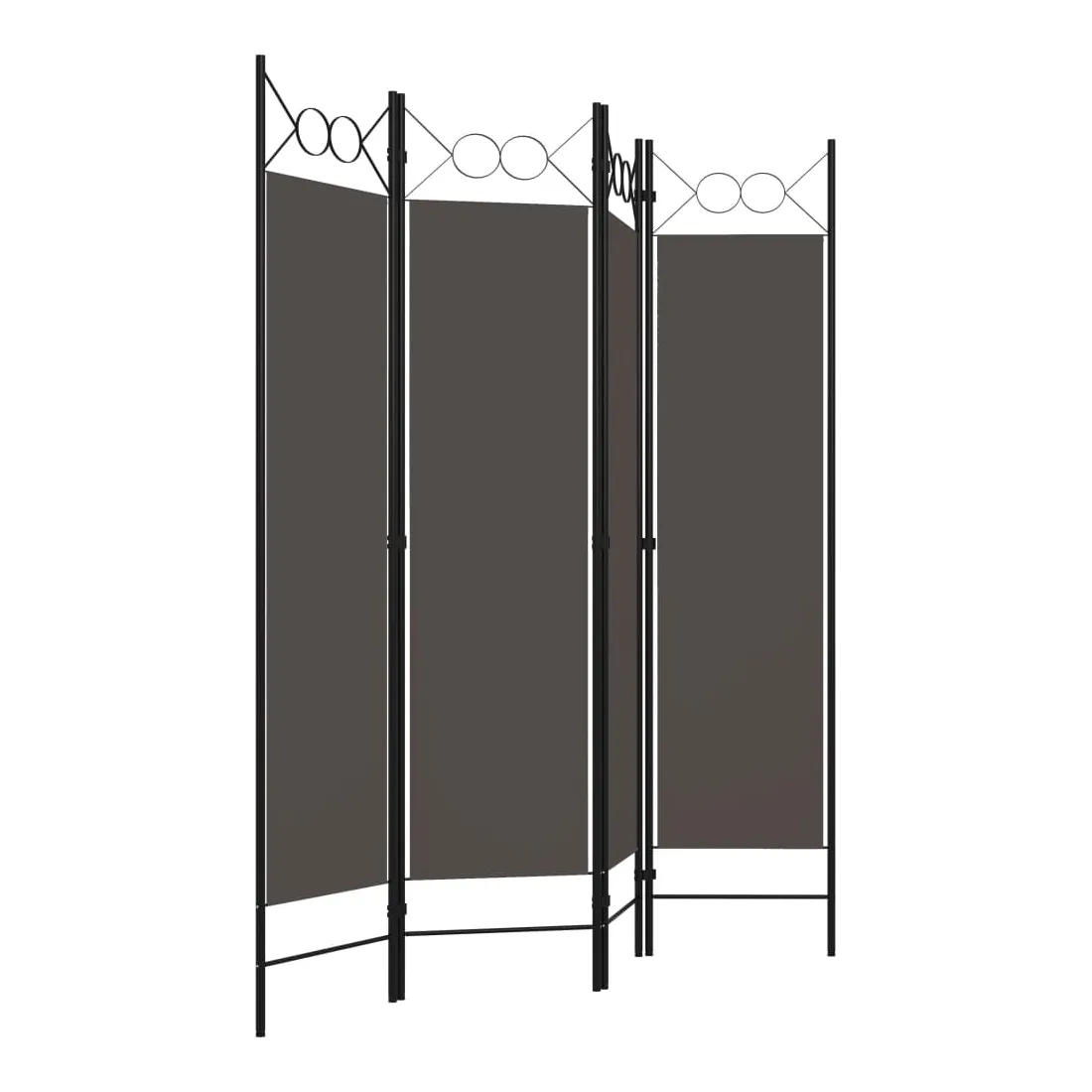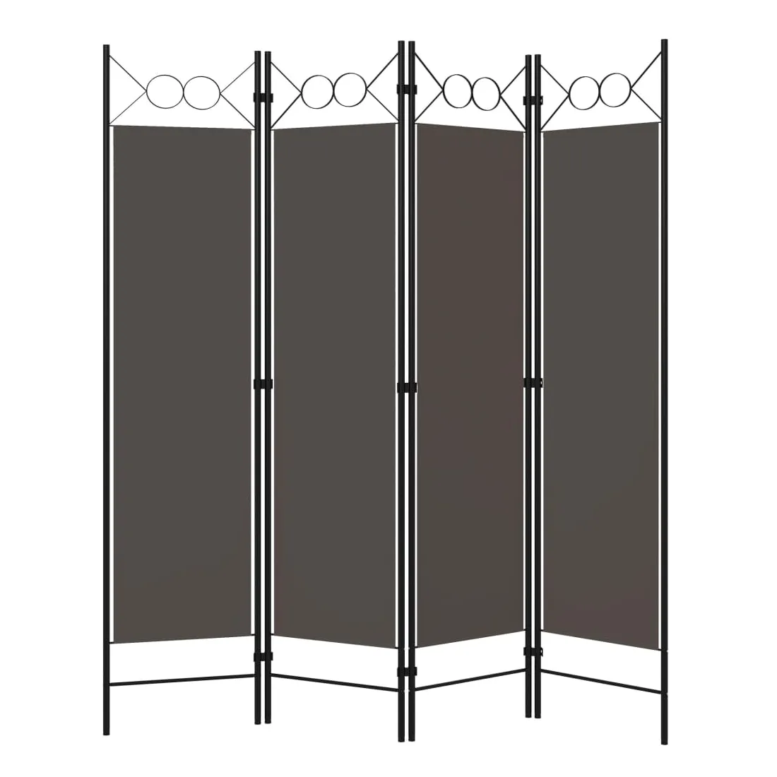 Notre cloison de séparation autoportante et pratique à 4 panneaux peut être utilisée comme cloison, écran d'intimité ou pour la décoration. Elle offre une intimité idéale dans la chambre à coucher ou un compartiment de la pièce. Le dessus avec un design circulaire ajoute une élégance supplémentaire. Cette cloison de séparation, composée d'un cadre en fer enduit de poudre et d'écrans en tissu, peut être facilement pliée lorsqu'elle n'est pas utilisée. Remarque : le tissu ne bloque pas complètement toute la lumière.