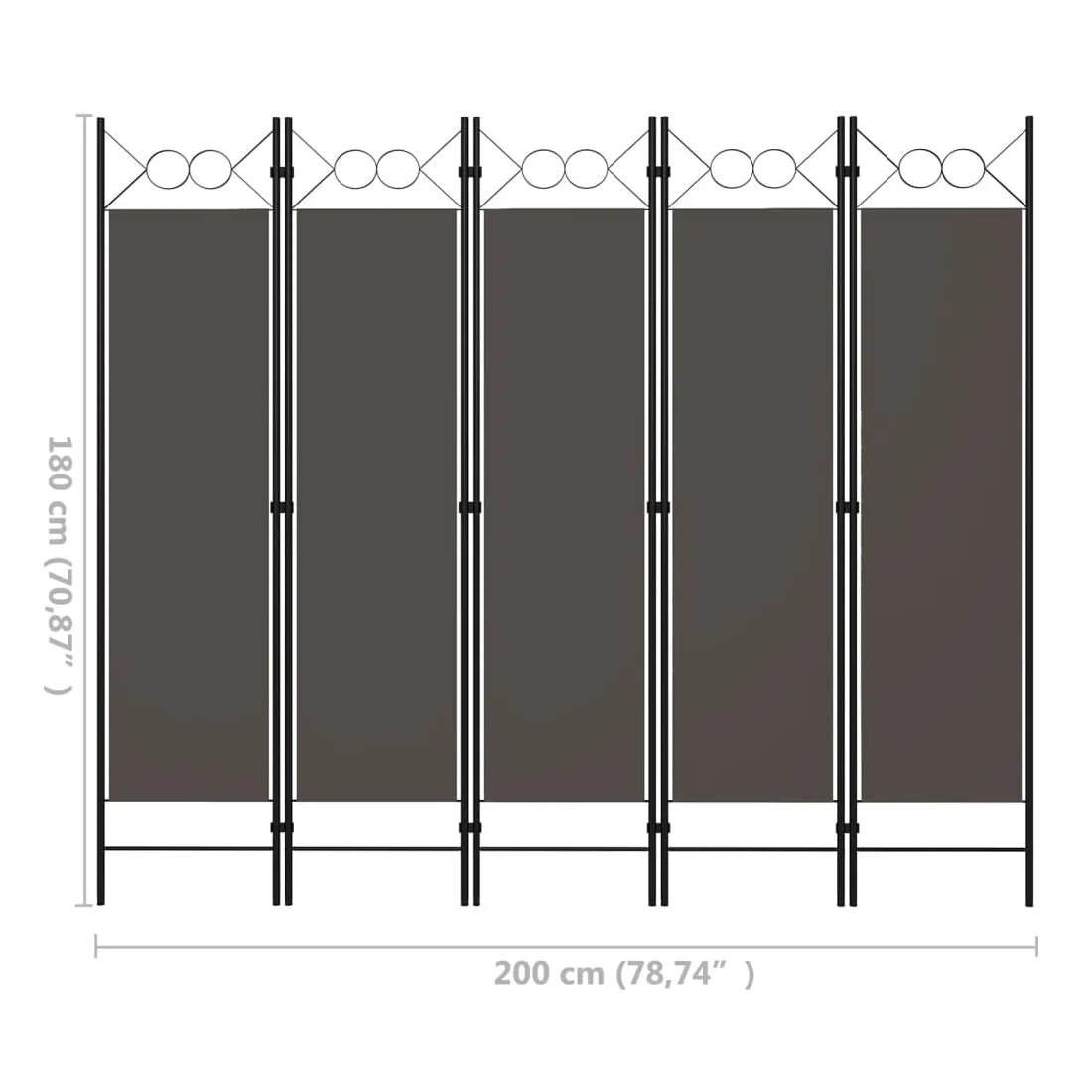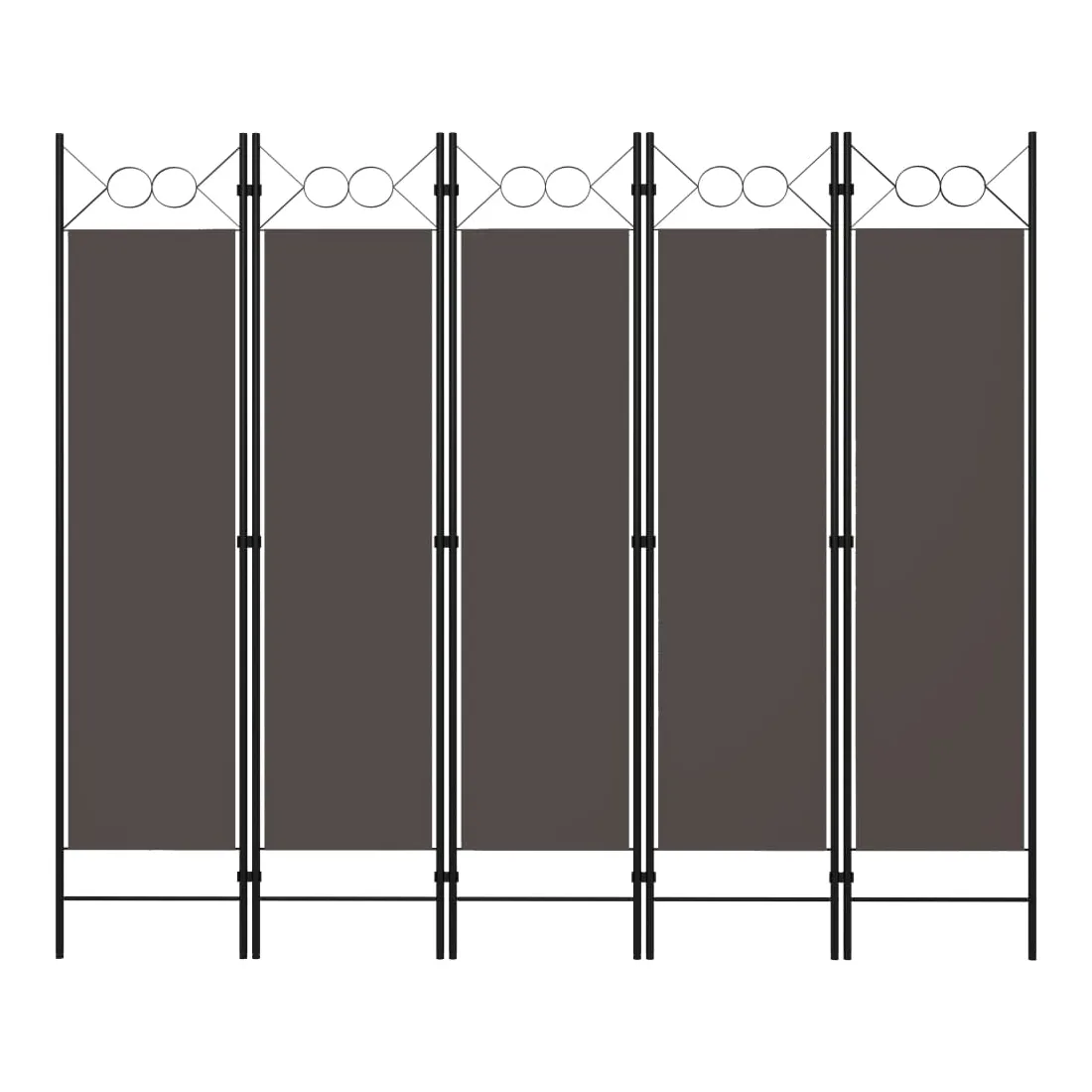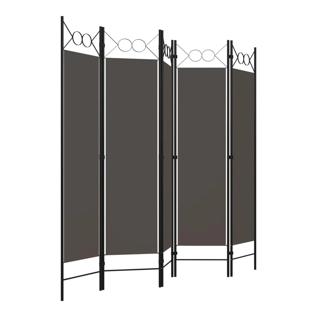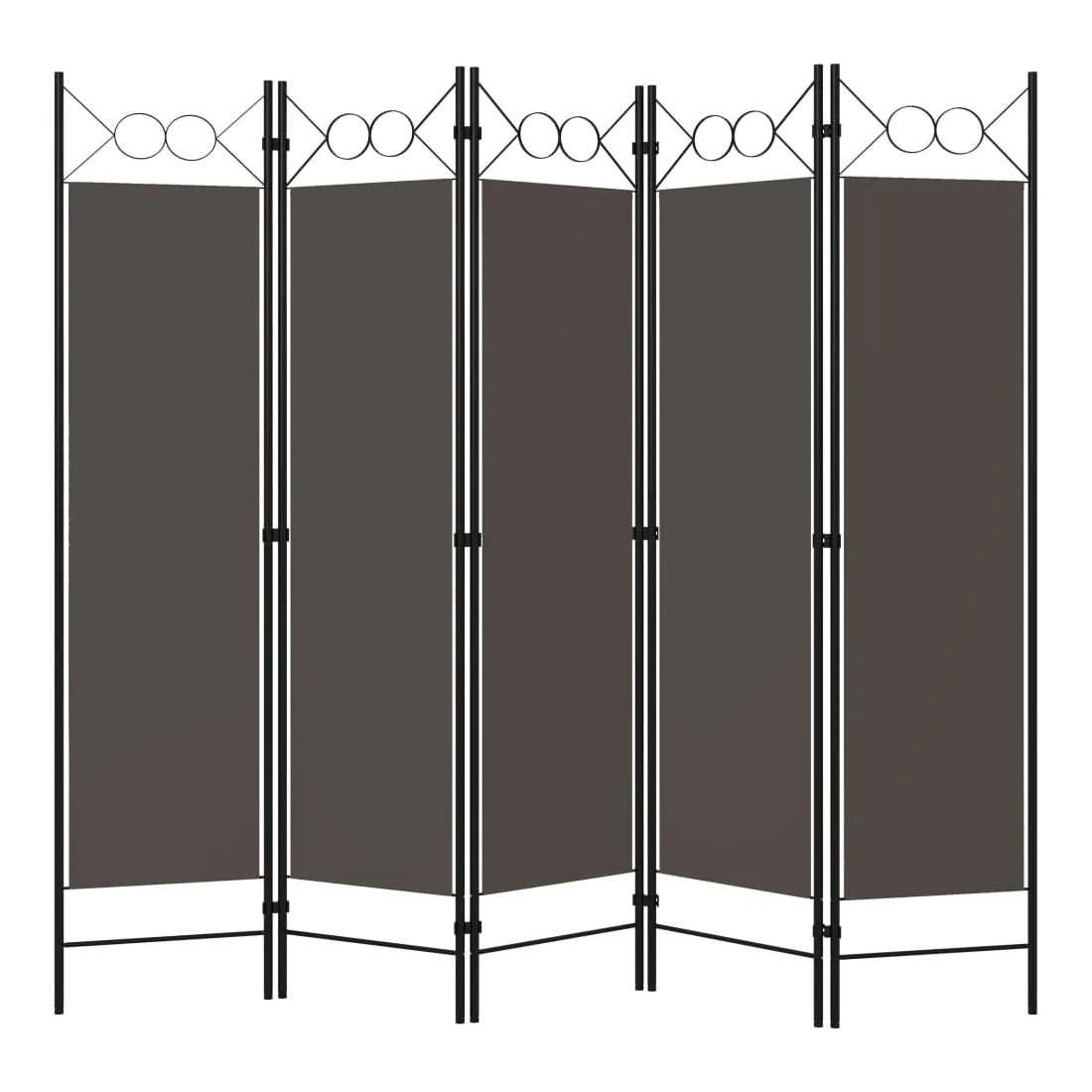 Notre cloison de séparation autoportante et pratique à 5 panneaux peut être utilisée comme cloison, écran d'intimité ou pour la décoration. Elle offre une intimité idéale dans la chambre à coucher ou un compartiment de la pièce. Le dessus avec un design circulaire ajoute une élégance supplémentaire. Cette cloison de séparation, composée d'un cadre en fer enduit de poudre et d'écrans en tissu, peut être facilement pliée lorsqu'elle n'est pas utilisée. Remarque : le tissu ne bloque pas complètement toute la lumière.