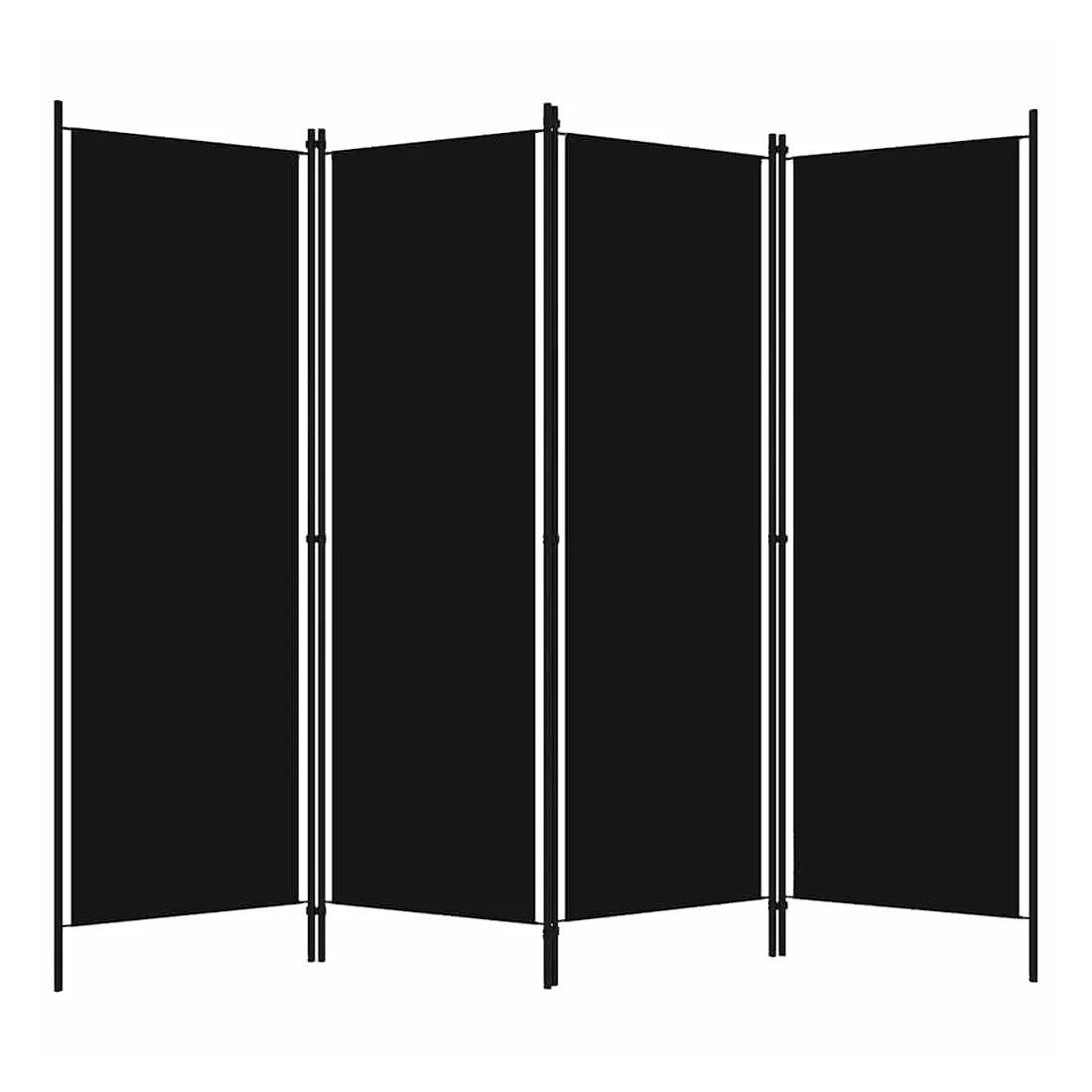 Notre cloison de séparation à 4 panneaux autoportante et pratique peut être utilisée comme cloison, écran d'intimité ou pour la décoration. Elle peut offrir une intimité idéale dans la chambre à coucher ou un compartiment de la pièce. Faite d'un cadre en fer enduit de poudre et d'écrans en tissu, cette cloison de séparation peut être facilement pliée lorsqu'elle n'est pas utilisée. Remarque : le tissu ne bloque pas complètement toute la lumière.