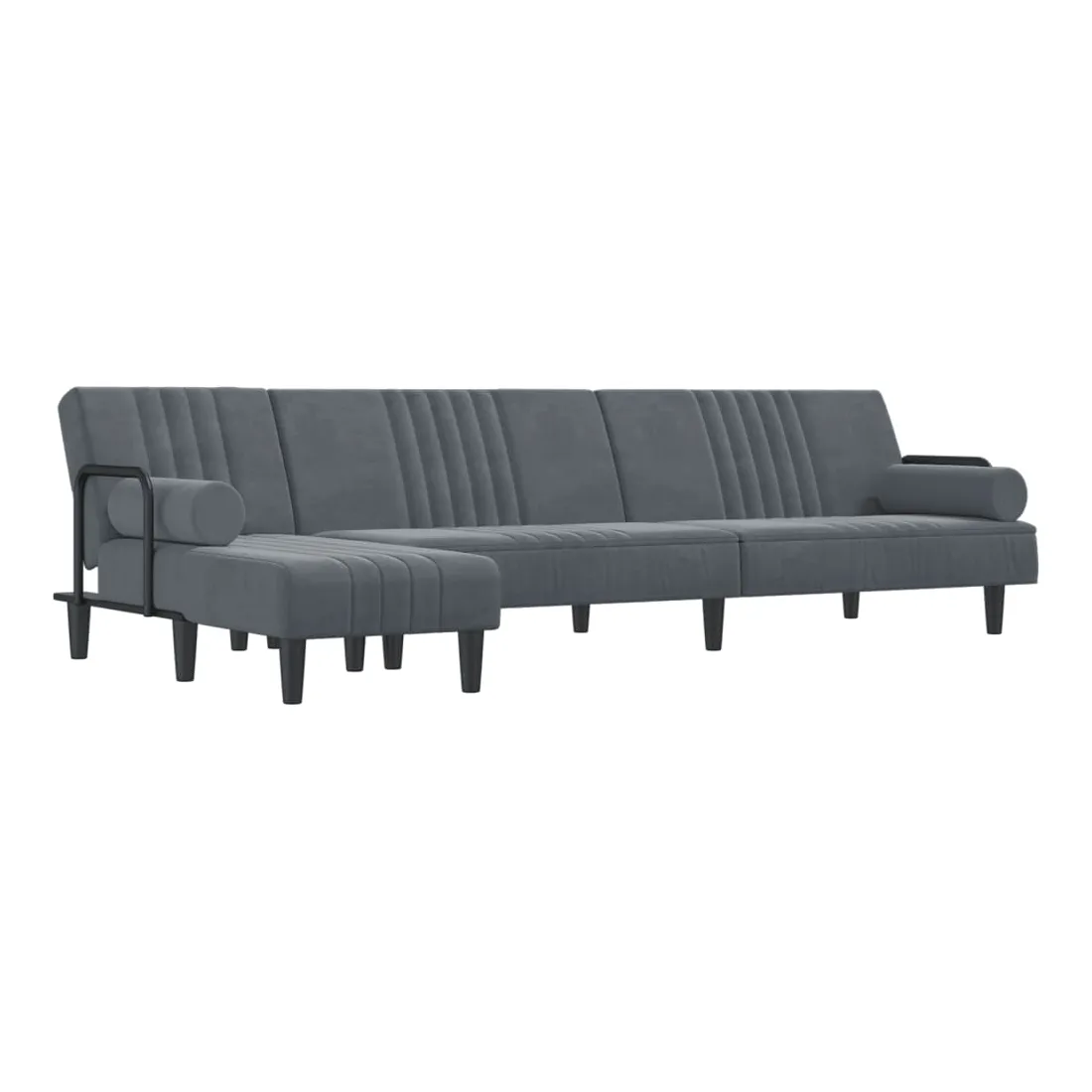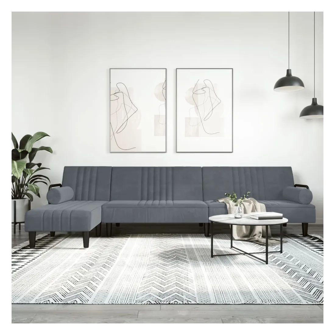 Canapé-lit en forme de L gris 260x140x70 cm velours