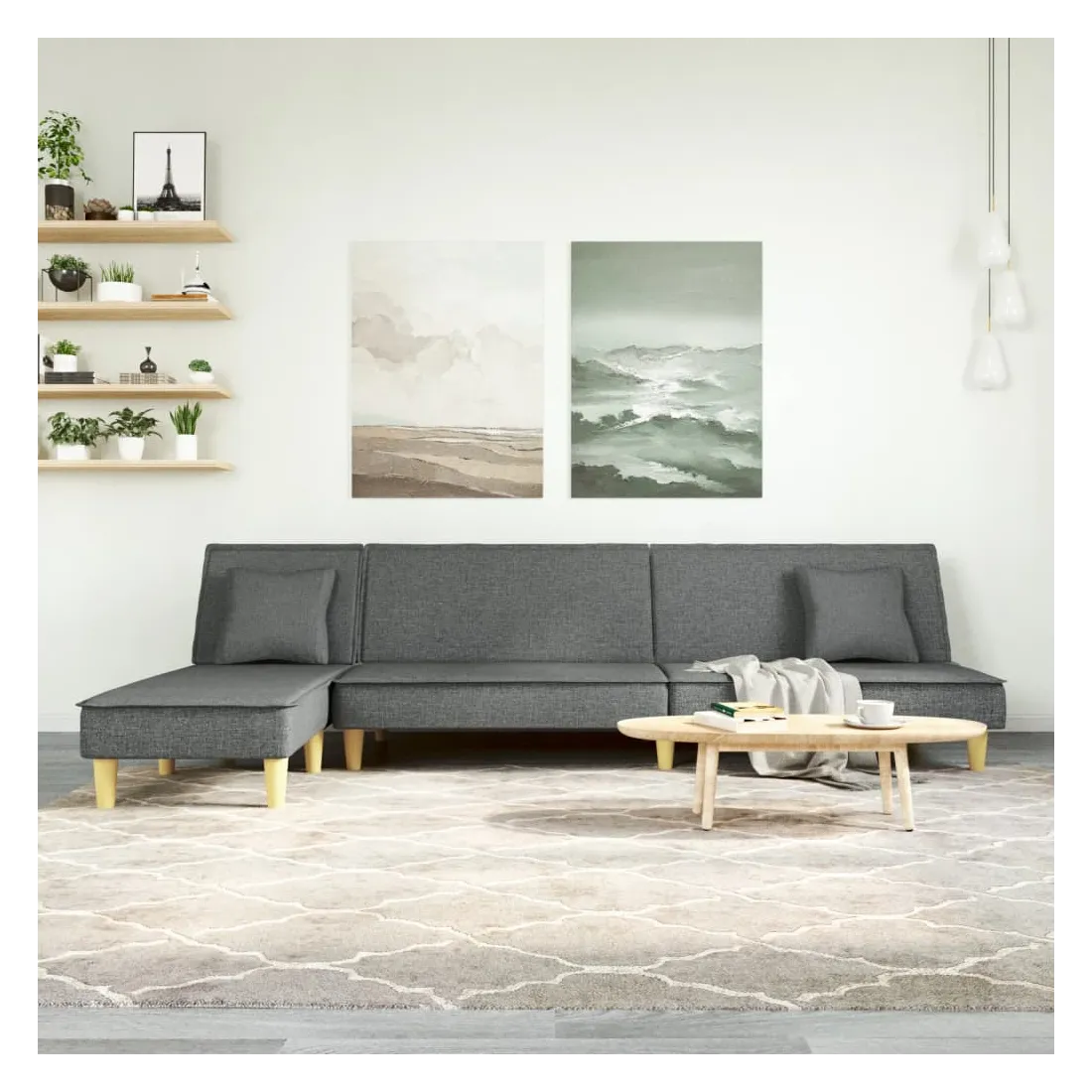Ce canapé-lit en forme de L est parfait pour accueillir des invités pendant la nuit tout en offrant un espace confortable pour s'asseoir pendant la journée. Canapé-lit multifonctionnel : le canapé-lit est un choix judicieux pour les espaces limités. Il possède 3 positions convertibles pour s'asseoir, se prélasser et dormir, donc il peut être un canapé-lit inclinable confortable pour un usage quotidien ou un lit temporaire pour les invités.Tissu durable : le tissu présente un aspect simple et épuré, et il est respirant et durable.Cadre robuste et stable : le cadre en contreplaqué du canapé-lit assure robustesse et stabilité.Expérience d'assise confortable : doté d'un revêtement en tissu enveloppant une mousse haute densité, ce canapé-lit offre un endroit confortable et douillet pour s'asseoir et dormir. Son dossier offre également une détente supplémentaire. Remarque :Le produit est assemblé à côté d'un canapé-lit et d'une chaise longue. Vous pouvez mettre la chaise longue à droite ou à gauche selon vos préférences.
