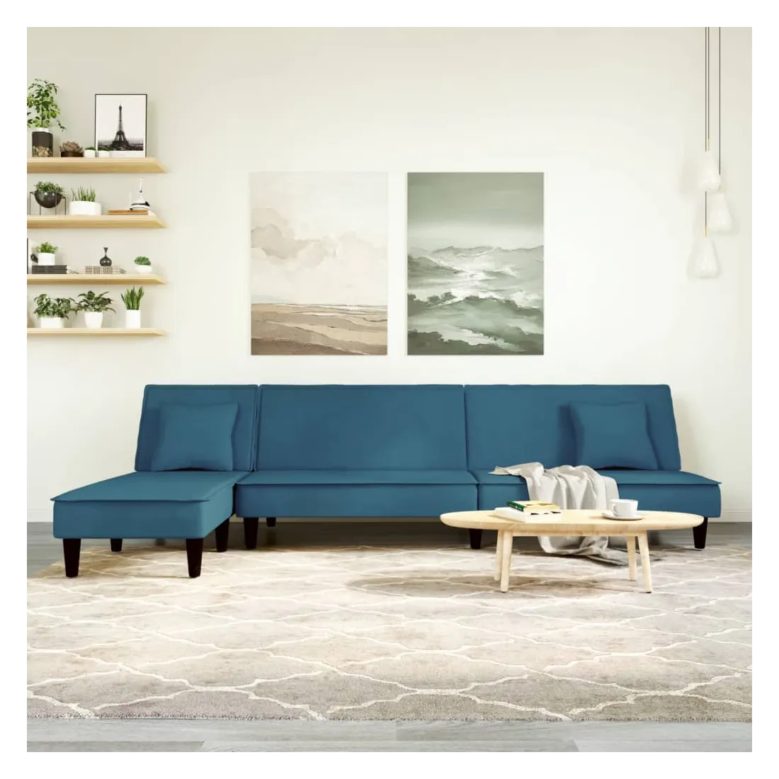 Canapé-lit en forme de L bleu 255x140x70 cm velours
