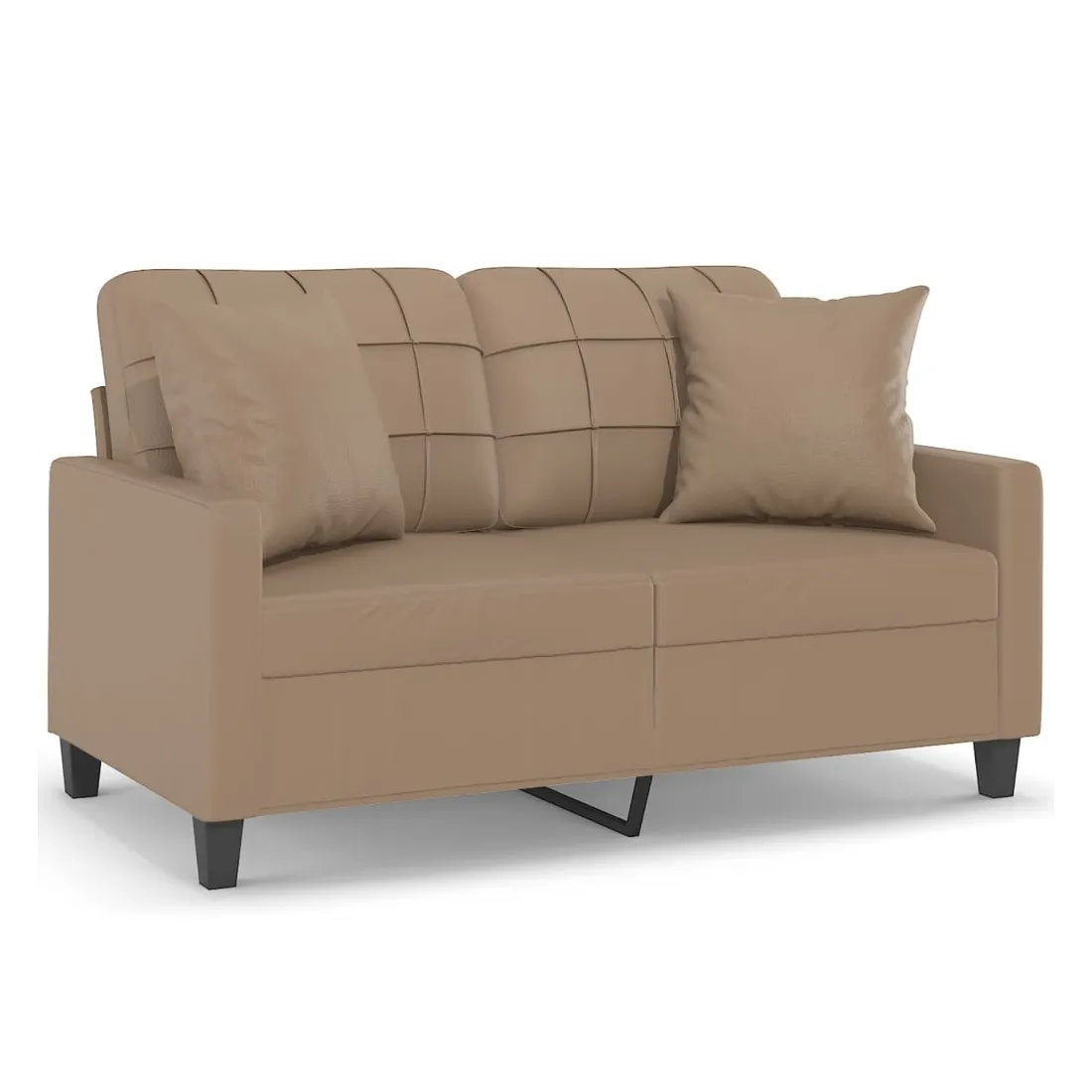 Ce canapé 2 places, qui se démarque par son design moderne et ses coussins décoratifs, sera un excellent endroit pour discuter, regarder la télévision ou simplement vous détendre. Similicuir durable : le similicuir de qualité supérieure est un matériau très durable. Il est résistant aux taches, ce qui le rend facile à nettoyer avec un chiffon humide. La surface lisse donne également un aspect luxueux et la beauté du cuir véritable.Cadre robuste et stable : le cadre en métal du canapé de salon assure robustesse et stabilité.Oreillers décoratifs avec inserts : ces oreillers décoratifs sont livrés avec des inserts en coton PP, vous n'avez donc pas besoin d'acheter des rembourrages.Expérience d'assise confortable : le canapé est très confortable avec les sièges, les accoudoirs et les oreillers de dossier bien rembourrés. En outre, les oreillers décoratifs peuvent ajouter un confort supplémentaire lorsque vous êtes assis ou allongé.