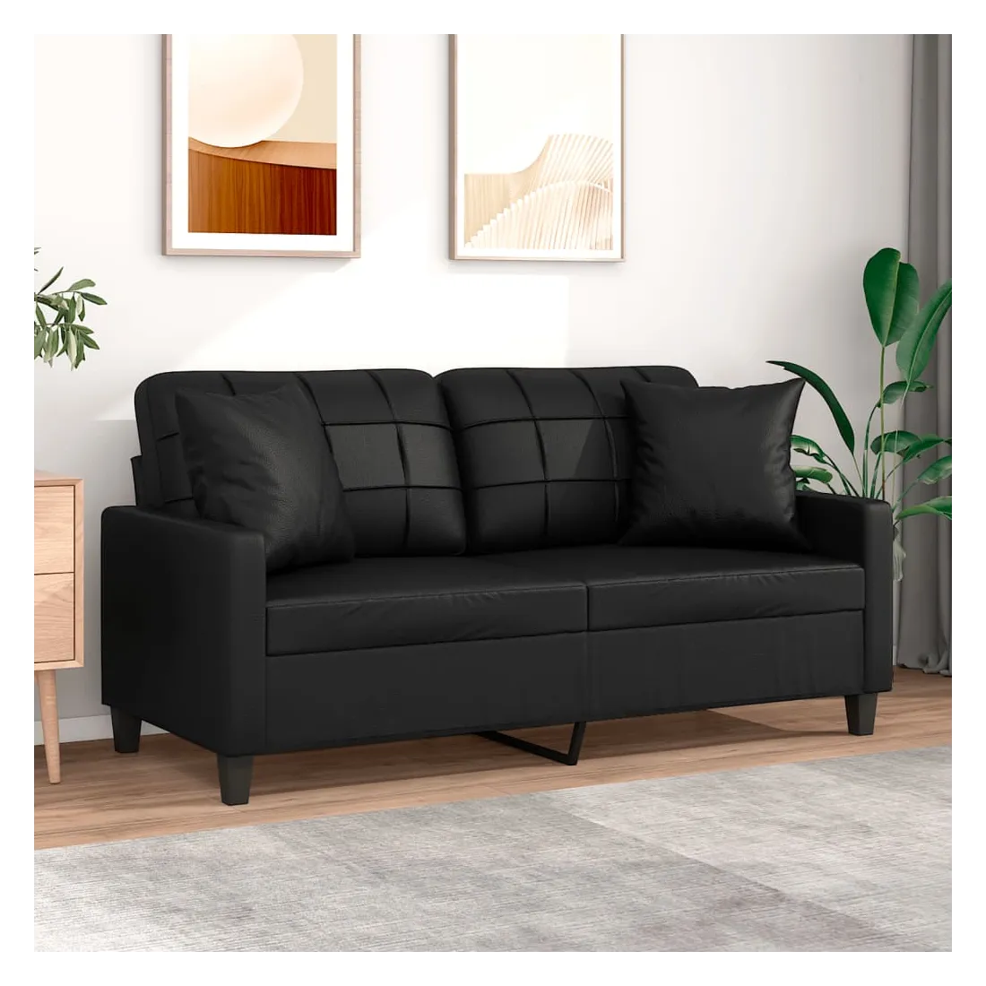 Ce canapé 2 places, qui se démarque par son design moderne et ses coussins décoratifs, sera un excellent endroit pour discuter, regarder la télévision ou simplement vous détendre. Similicuir durable : le similicuir de qualité supérieure est un matériau très durable. Il est résistant aux taches, ce qui le rend facile à nettoyer avec un chiffon humide. La surface lisse donne également un aspect luxueux et la beauté du cuir véritable.Cadre robuste et stable : le cadre en métal du canapé de salon assure robustesse et stabilité.Oreillers décoratifs avec inserts : ces oreillers décoratifs sont livrés avec des inserts en coton PP, vous n'avez donc pas besoin d'acheter des rembourrages.Expérience d'assise confortable : le canapé est très confortable avec les sièges, les accoudoirs et les oreillers de dossier bien rembourrés. En outre, les oreillers décoratifs peuvent ajouter un confort supplémentaire lorsque vous êtes assis ou allongé.