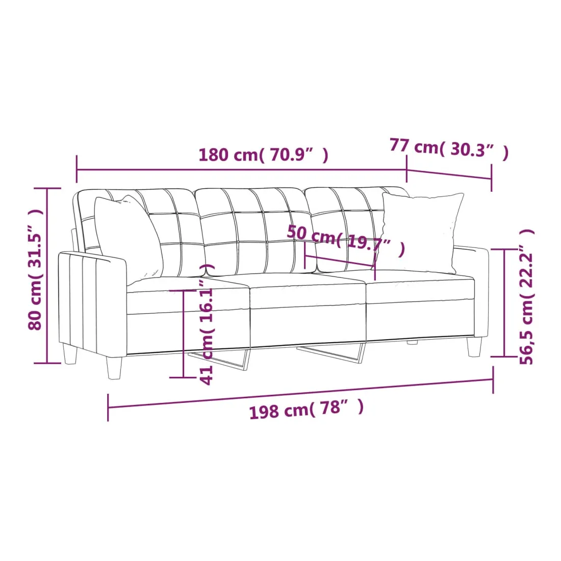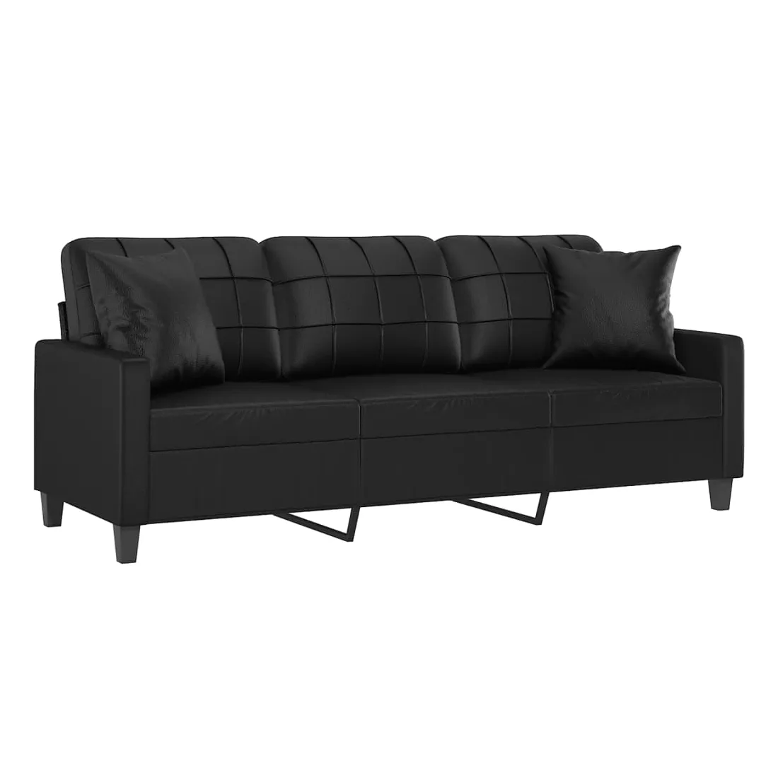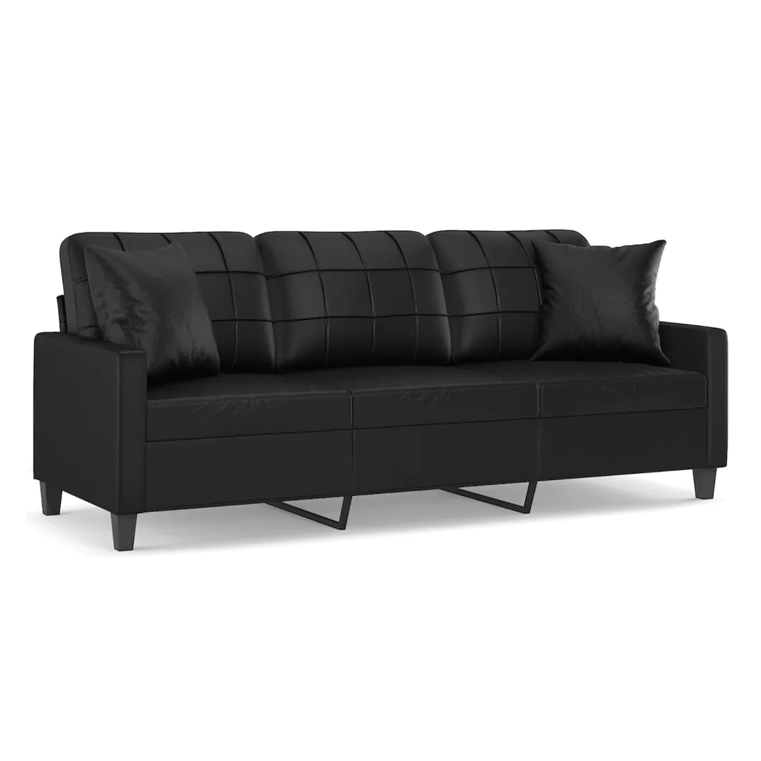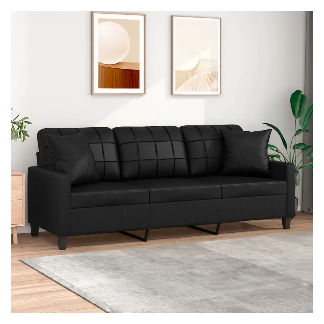 Ce canapé 3 places, qui se démarque par son design moderne et ses coussins décoratifs, sera un excellent endroit pour discuter, regarder la télévision ou simplement vous détendre. Similicuir durable : le similicuir de qualité supérieure est un matériau très durable. Il est résistant aux taches, ce qui le rend facile à nettoyer avec un chiffon humide. La surface lisse donne également un aspect luxueux et la beauté du cuir véritable.Cadre robuste et stable : le cadre en métal du canapé de salon assure robustesse et stabilité.Oreillers décoratifs avec inserts : ces oreillers décoratifs sont livrés avec des inserts en coton PP, vous n'avez donc pas besoin d'acheter des rembourrages.Expérience d'assise confortable : le canapé est très confortable avec les sièges, les accoudoirs et les oreillers de dossier bien rembourrés. En outre, les oreillers décoratifs peuvent ajouter un confort supplémentaire lorsque vous êtes assis ou allongé.