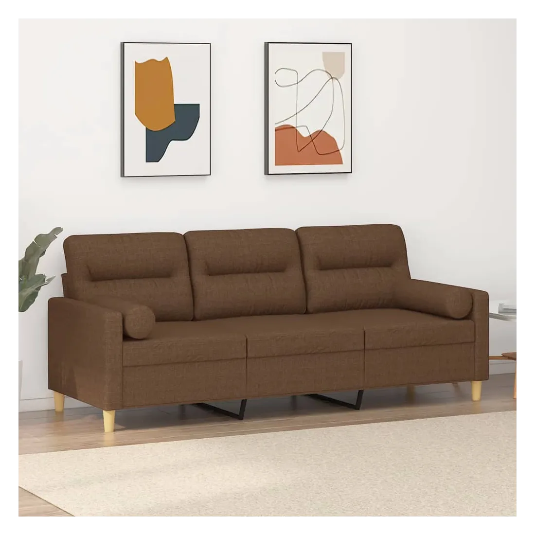 Canapé 3 places avec oreillers décoratifs marron 180 cm tissu