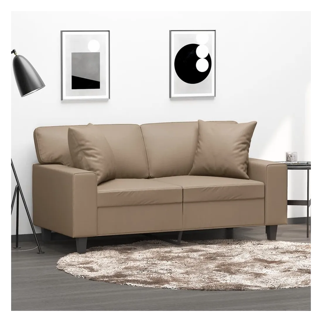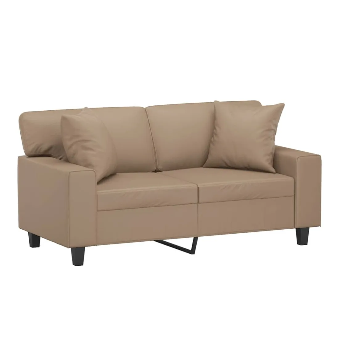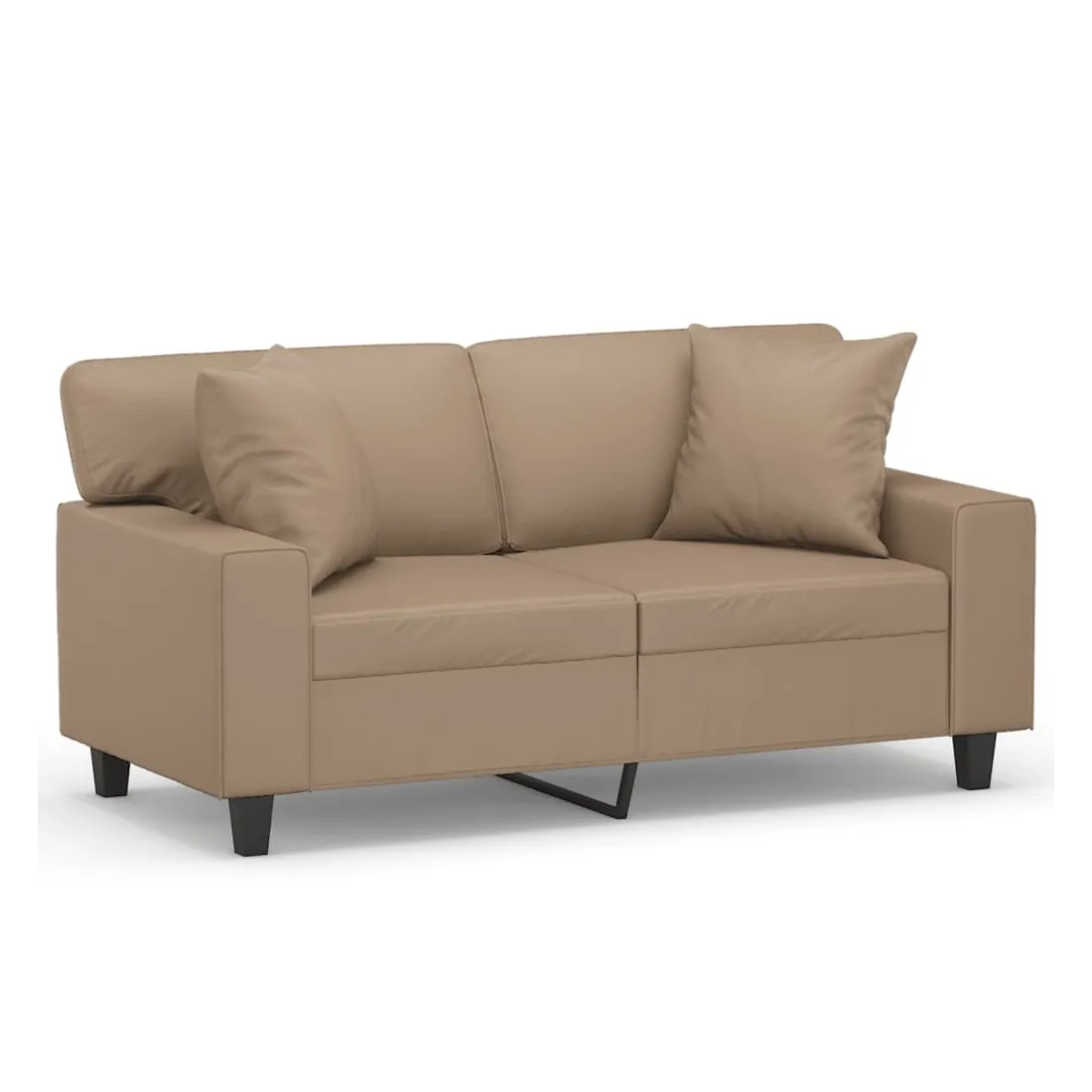 Ce canapé 2 places, qui se démarque par son design moderne et ses coussins décoratifs, sera un excellent endroit pour discuter, regarder la télévision ou simplement vous détendre. Similicuir durable : le similicuir de qualité supérieure est un matériau très durable. Il est résistant aux taches, ce qui le rend facile à nettoyer avec un chiffon humide. La surface lisse donne également un aspect luxueux et la beauté du cuir véritable.Cadre robuste et stable : le cadre en métal du canapé de salon assure robustesse et stabilité.Oreillers décoratifs avec inserts : ces oreillers de canapé sont livrés avec des inserts en coton PP, vous n'avez donc pas besoin d'acheter des rembourrages.Expérience d'assise confortable : le canapé est très confortable avec les sièges, les accoudoirs et les oreillers de dossier bien rembourrés. En outre, les oreillers décoratifs peuvent ajouter un confort supplémentaire lorsque vous êtes assis ou allongé.