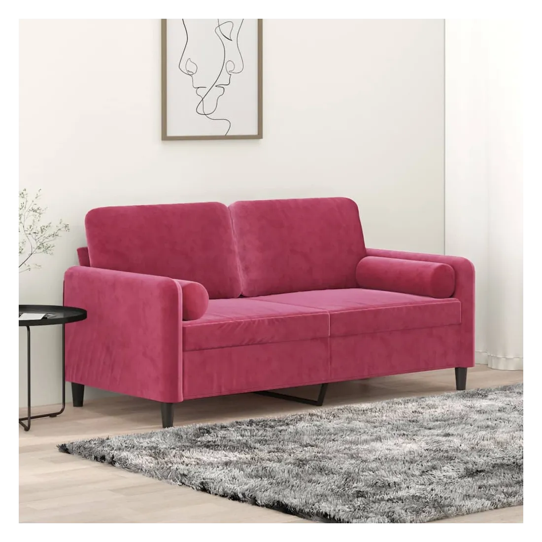 Ce canapé 2 places, qui se démarque par son design moderne et ses coussins décoratifs, sera un excellent endroit pour discuter, regarder la télévision ou simplement vous détendre. Velours doux : le velours est un tissu doux et luxueux qui se reconnaît à son tas dense de fibres uniformément coupées qui ont une touche lisse. Le tissu en velours présente un toucher doux distinctif, ce qui le rend agréable au toucher.Cadre robuste et stable : le cadre en métal du canapé de salon assure robustesse et stabilité.Housses d'oreillers amovibles : grâce à la fermeture éclair, les housses de ces oreillers de traversin sont faciles à retirer et à nettoyer en cas de besoin.Expérience d'assise confortable : le canapé est très confortable avec les sièges, les accoudoirs et les oreillers de dossier bien rembourrés. En outre, les oreillers décoratifs peuvent ajouter un confort supplémentaire lorsque vous êtes assis ou allongé.