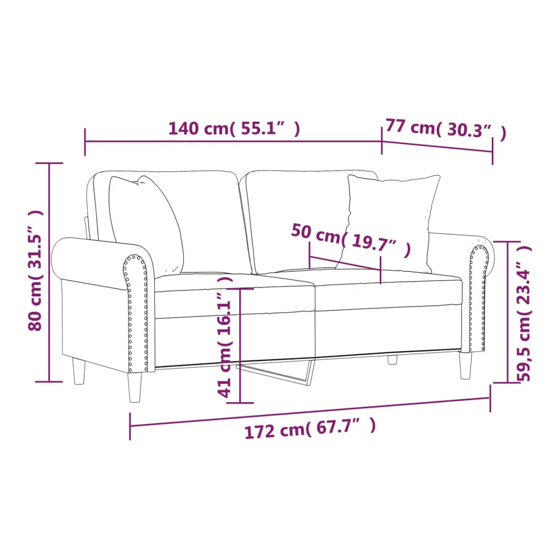Ce canapé 2 places, qui se démarque par son design moderne et ses coussins décoratifs, sera un excellent endroit pour discuter, regarder la télévision ou simplement vous détendre. Velours doux : le velours est un tissu doux et luxueux qui se reconnaît à son tas dense de fibres uniformément coupées qui ont une touche lisse. Le tissu en velours présente un toucher doux distinctif, ce qui le rend agréable au toucher.Cadre robuste et stable : le cadre en métal du canapé de salon assure robustesse et stabilité.Oreillers décoratifs avec inserts : ces oreillers de canapé sont livrés avec des inserts en coton PP, vous n'avez donc pas besoin d'acheter des rembourrages.Expérience d'assise confortable : le canapé est très confortable avec les sièges, les accoudoirs et les oreillers de dossier bien rembourrés. En outre, les oreillers décoratifs peuvent ajouter un confort supplémentaire lorsque vous êtes assis ou allongé.