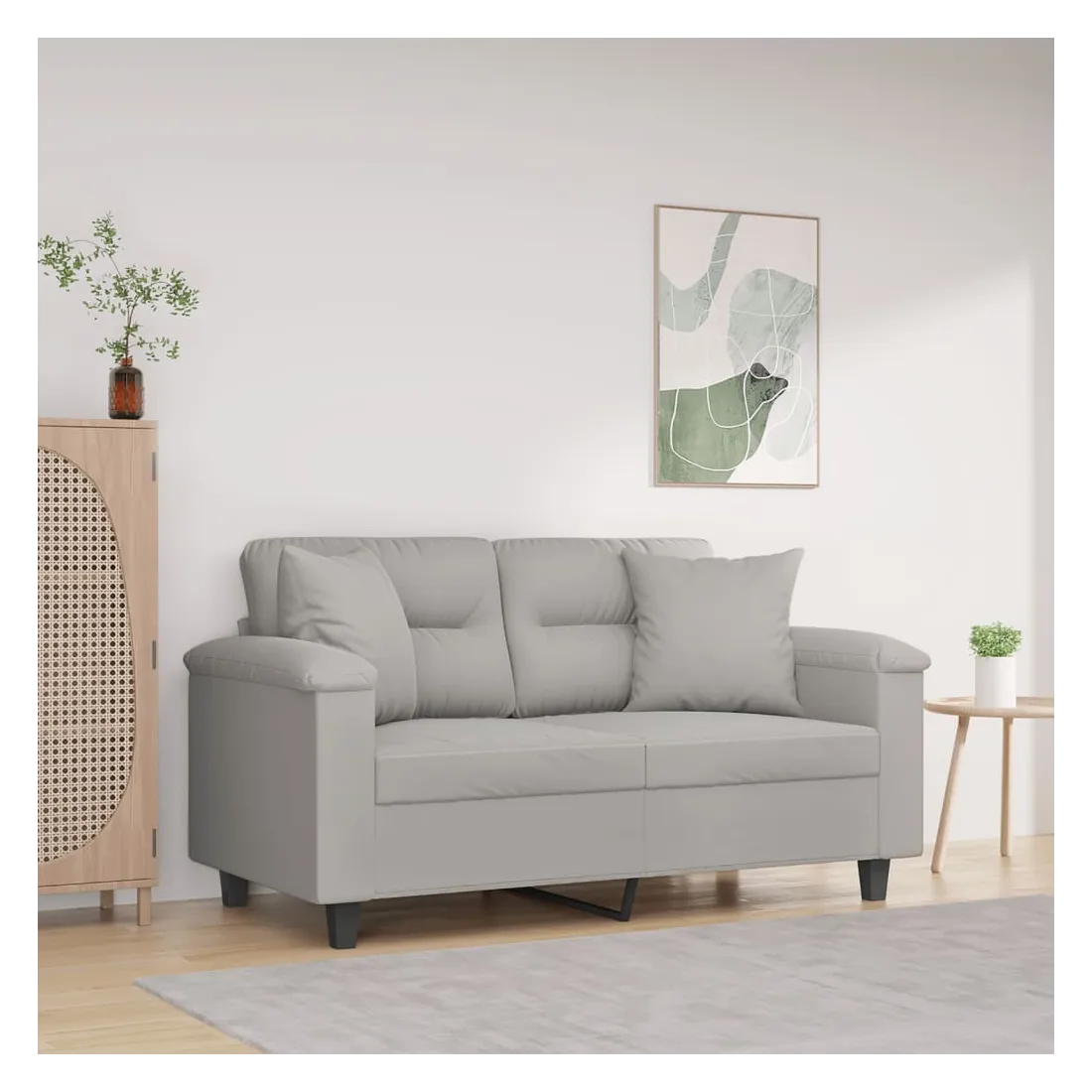 Ce canapé 2 places, qui se démarque par son design moderne et ses coussins décoratifs, sera un excellent endroit pour discuter, regarder la télévision ou simplement vous détendre. Microfibre résistant : le microfibre est un tissu synthétique composé de fibres ultra-fines, particulièrement résistantes aux taches. Le tissu en microfibre est un excellent choix pour le rembourrage des meubles en raison de sa durabilité et de son nettoyage facile.Cadre robuste et stable : le cadre en métal du canapé de salon assure robustesse et stabilité.Oreillers décoratifs avec inserts : ces oreillers décoratifs sont livrés avec des inserts en coton PP, vous n'avez donc pas besoin d'acheter des rembourrages.Expérience d'assise confortable : le canapé est très confortable avec les sièges, les accoudoirs et les oreillers de dossier bien rembourrés. En outre, les oreillers décoratifs peuvent ajouter un confort supplémentaire lorsque vous êtes assis ou allongé.