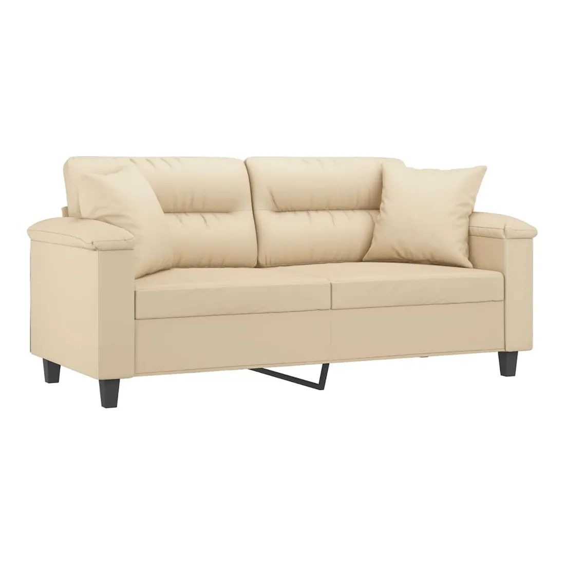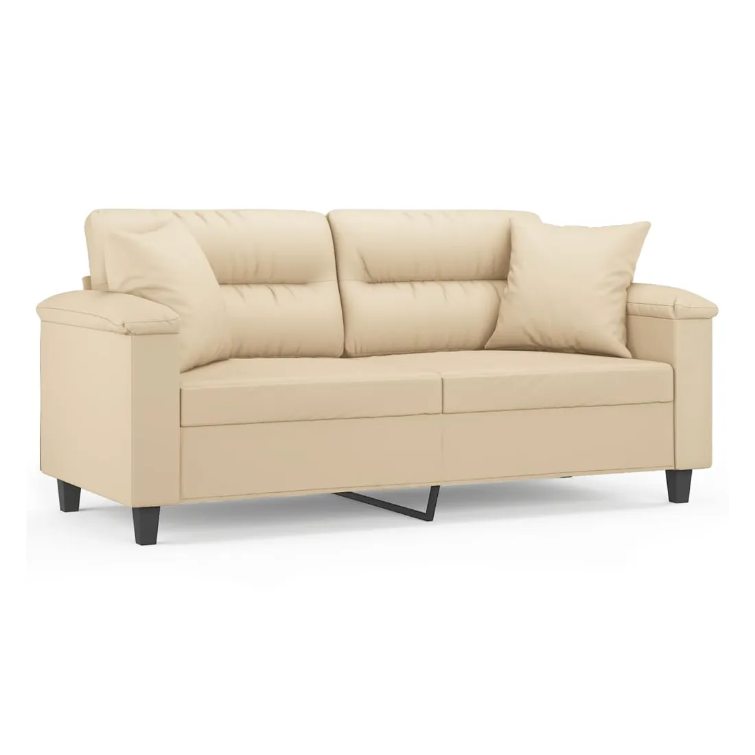 Canapé 2 places avec oreillers crème 140 cm tissu microfibre
