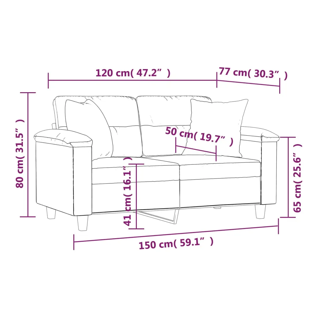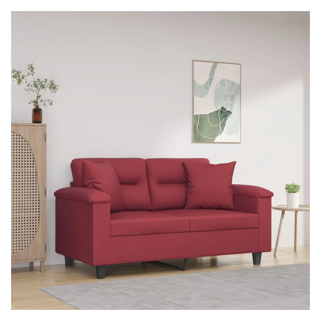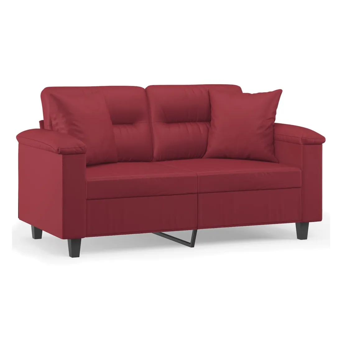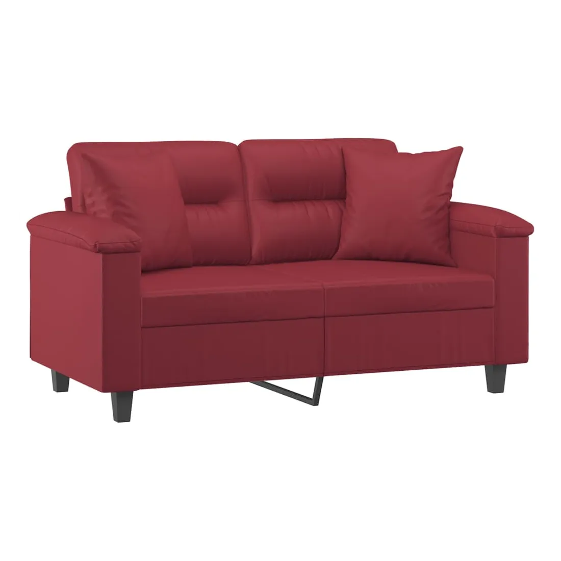 Ce canapé 2 places, qui se démarque par son design moderne et ses coussins décoratifs, sera un excellent endroit pour discuter, regarder la télévision ou simplement vous détendre. Similicuir durable : le similicuir de qualité supérieure est un matériau très durable. Il est résistant aux taches, ce qui le rend facile à nettoyer avec un chiffon humide. La surface lisse donne également un aspect luxueux et la beauté du cuir véritable.Cadre robuste et stable : le cadre en métal du canapé de salon assure robustesse et stabilité.Oreillers décoratifs avec inserts : ces oreillers décoratifs sont livrés avec des inserts en coton PP, vous n'avez donc pas besoin d'acheter des rembourrages.Expérience d'assise confortable : le canapé est très confortable avec les sièges, les accoudoirs et les oreillers de dossier bien rembourrés. En outre, les oreillers décoratifs peuvent ajouter un confort supplémentaire lorsque vous êtes assis ou allongé.