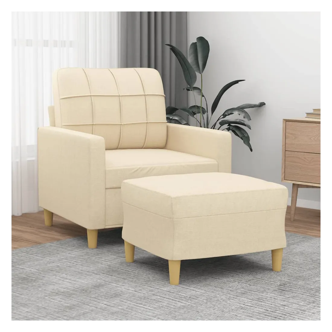Ce fauteuil avec repose-pied est un excellent endroit pour discuter, lire, regarder la télévision ou simplement vous détendre. Il est destiné à être un point central de votre maison. Tissu durable : le tissu présente un aspect simple et épuré tout en restant respirant et durable.Structure robuste et stable : la structure en contreplaqué et en métal du canapé avec repose-pieds assure robustesse et stabilité.Expérience d'assise confortable : le fauteuil est très confortable avec le siège, les accoudoirs et le coussin de dossier bien rembourrés.Repose-pied polyvalent : ce repose-pied convient pour reposer vos pieds lorsque vous êtes allongé dans un canapé ou un fauteuil inclinable, ou pour vous offrir un siège supplémentaire dans votre pièce. De plus, le design simple et la taille compacte le rendent idéal pour presque tous vos espaces de vie.Design accrocheur : doté d'un design simple mais moderne, ce canapé avec repose-pied est destiné à attirer l'attention dans votre pièce.