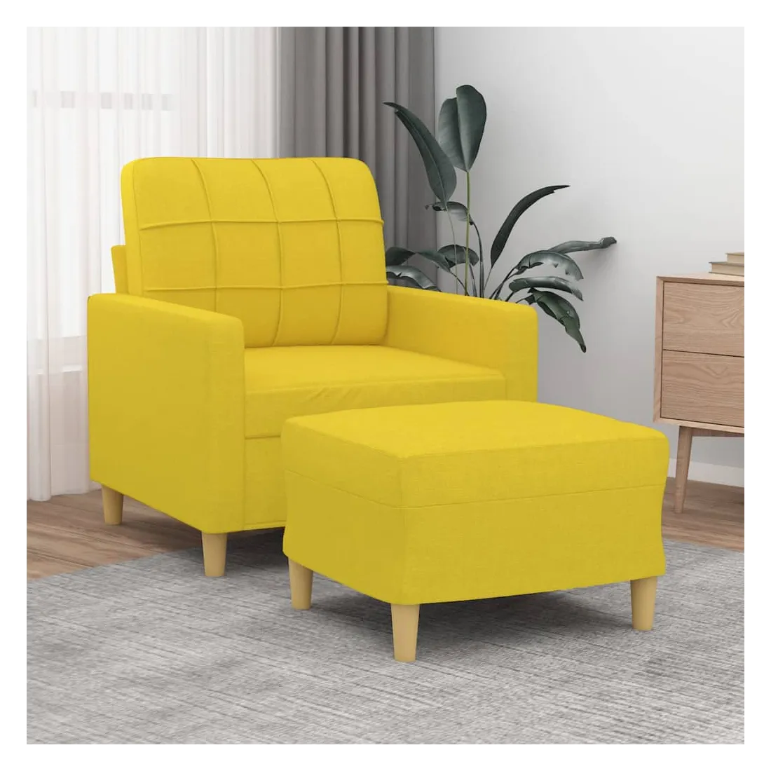 Ce fauteuil avec repose-pied est un excellent endroit pour discuter, lire, regarder la télévision ou simplement vous détendre. Il est destiné à être un point central de votre maison. Tissu durable : le tissu présente un aspect simple et épuré tout en restant respirant et durable.Structure robuste et stable : la structure en contreplaqué et en métal du canapé avec repose-pieds assure robustesse et stabilité.Expérience d'assise confortable : le fauteuil est très confortable avec le siège, les accoudoirs et le coussin de dossier bien rembourrés.Repose-pied polyvalent : ce repose-pied convient pour reposer vos pieds lorsque vous êtes allongé dans un canapé ou un fauteuil inclinable, ou pour vous offrir un siège supplémentaire dans votre pièce. De plus, le design simple et la taille compacte le rendent idéal pour presque tous vos espaces de vie.Design accrocheur : doté d'un design simple mais moderne, ce canapé avec repose-pied est destiné à attirer l'attention dans votre pièce.