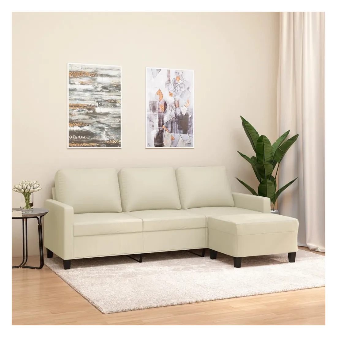 Ce canapé à 3 places avec repose-pieds est un excellent endroit pour discuter, lire, regarder la télévision ou simplement vous détendre. Il est destiné à être un point central dans votre maison. Similicuir durable : le similicuir de qualité supérieure est un matériau très durable. Il est résistant aux taches, ce qui le rend facile à nettoyer avec un chiffon humide. La surface lisse donne également un aspect luxueux et la beauté du cuir véritable.Structure robuste et stable : la structure en contreplaqué et en métal du canapé avec repose-pieds assure robustesse et stabilité.Expérience d'assise confortable : le fauteuil est très confortable avec les sièges, les accoudoirs et les coussins de dossier bien rembourrés.Repose-pied polyvalent : ce repose-pied convient pour reposer vos pieds lorsque vous êtes allongé dans un canapé ou un fauteuil inclinable, ou pour vous offrir un siège supplémentaire dans votre pièce. De plus, le design simple et la taille compacte le rendent idéal pour presque tous vos espaces de vie.Design accrocheur : doté d'un design simple mais moderne, ce canapé avec repose-pied est destiné à attirer l'attention dans votre pièce.