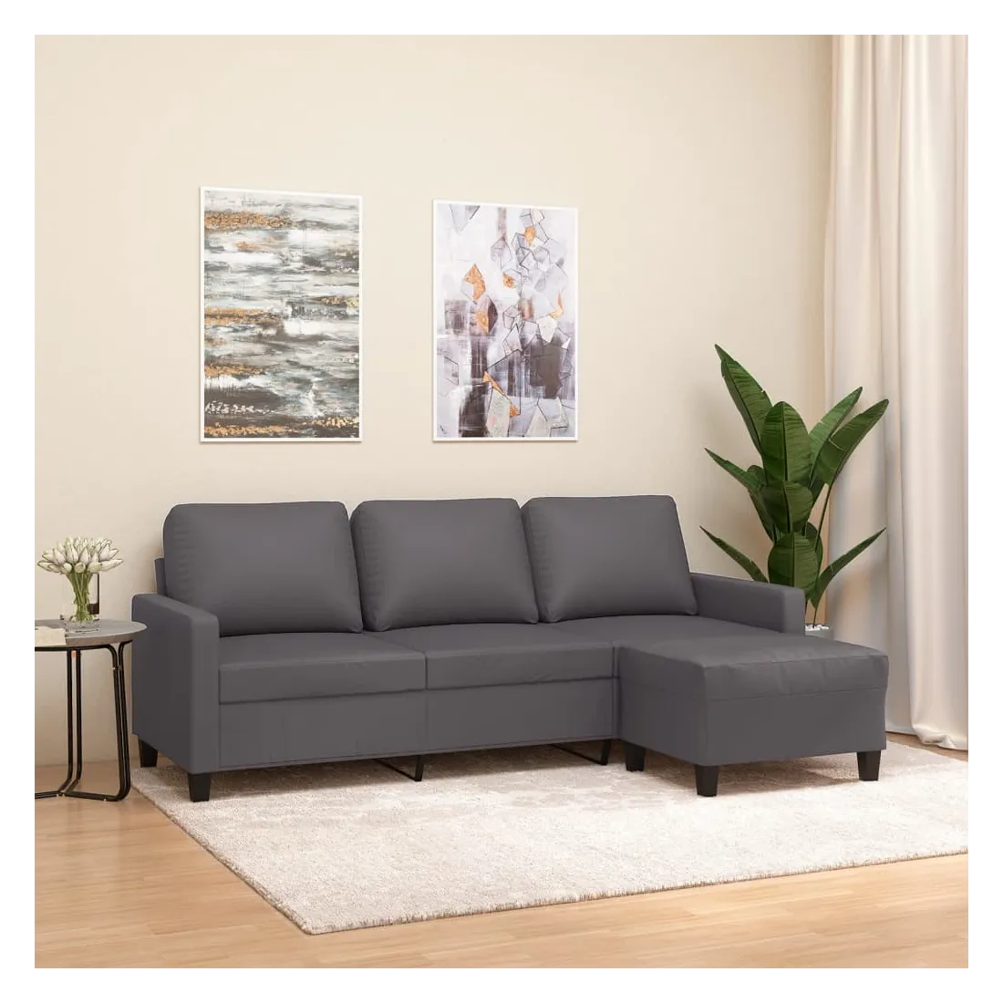 Ce canapé à 3 places avec repose-pieds est un excellent endroit pour discuter, lire, regarder la télévision ou simplement vous détendre. Il est destiné à être un point central dans votre maison. Similicuir durable : le similicuir de qualité supérieure est un matériau très durable. Il est résistant aux taches, ce qui le rend facile à nettoyer avec un chiffon humide. La surface lisse donne également un aspect luxueux et la beauté du cuir véritable.Structure robuste et stable : la structure en contreplaqué et en métal du canapé avec repose-pieds assure robustesse et stabilité.Expérience d'assise confortable : le fauteuil est très confortable avec les sièges, les accoudoirs et les coussins de dossier bien rembourrés.Repose-pied polyvalent : ce repose-pied convient pour reposer vos pieds lorsque vous êtes allongé dans un canapé ou un fauteuil inclinable, ou pour vous offrir un siège supplémentaire dans votre pièce. De plus, le design simple et la taille compacte le rendent idéal pour presque tous vos espaces de vie.Design accrocheur : doté d'un design simple mais moderne, ce canapé avec repose-pied est destiné à attirer l'attention dans votre pièce.