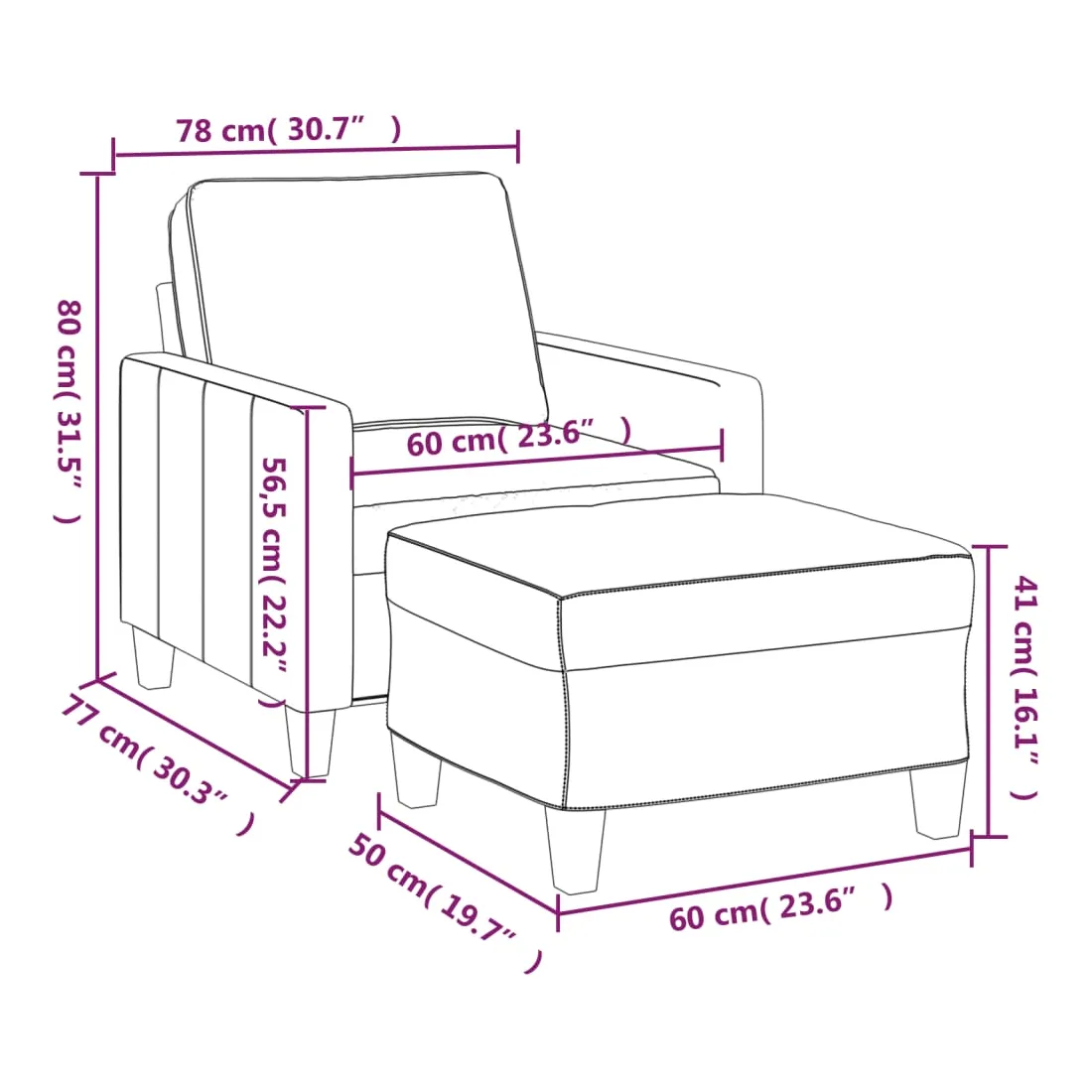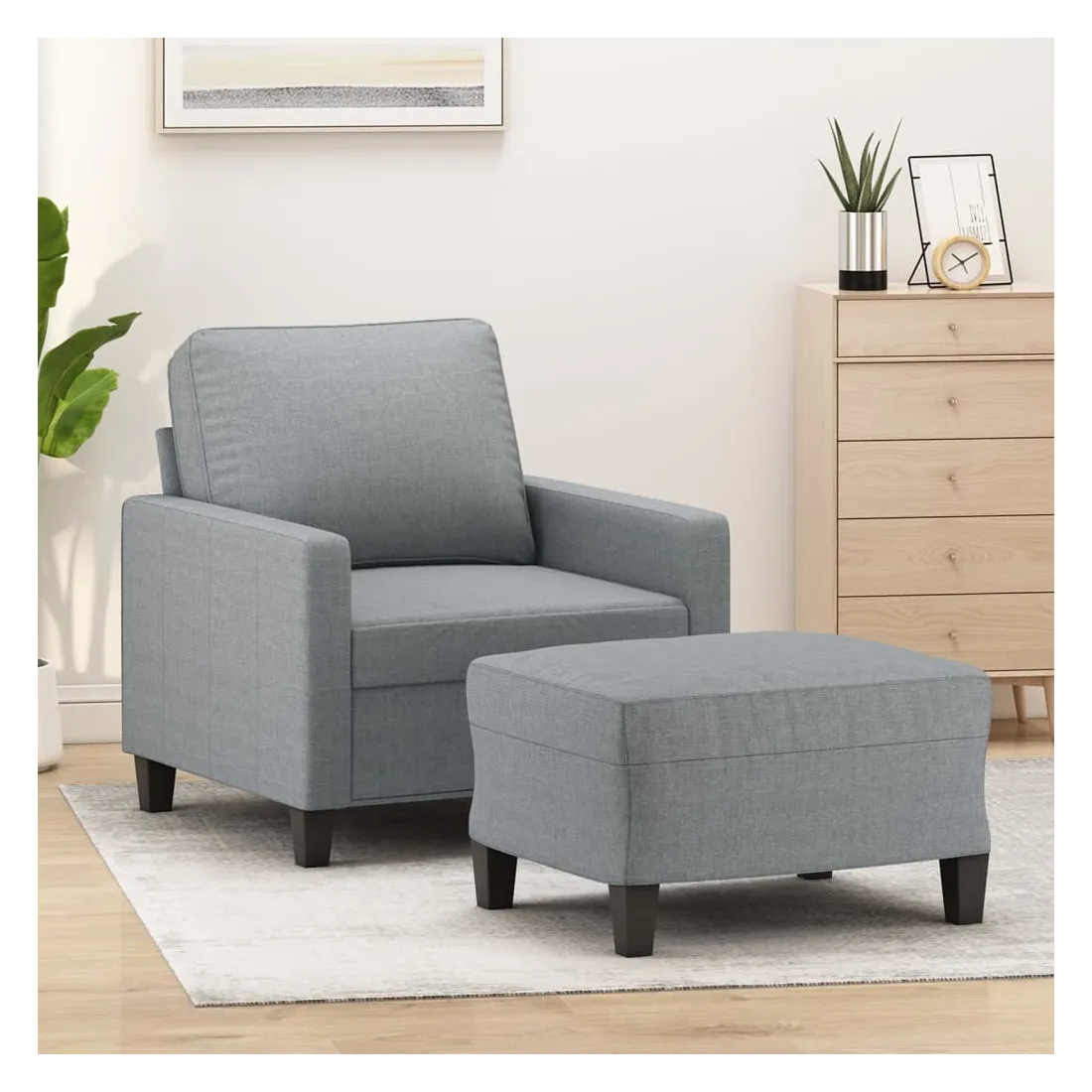 Ce fauteuil avec repose-pied est un excellent endroit pour discuter, lire, regarder la télévision ou simplement vous détendre. Il est destiné à être un point central de votre maison. Tissu durable : le tissu présente un aspect simple et épuré tout en restant respirant et durable.Structure robuste et stable : la structure en contreplaqué et en métal du canapé avec repose-pieds assure robustesse et stabilité.Expérience d'assise confortable : le fauteuil est très confortable avec le siège, les accoudoirs et le coussin de dossier bien rembourrés.Repose-pied polyvalent : ce repose-pied convient pour reposer vos pieds lorsque vous êtes allongé dans un canapé ou un fauteuil inclinable, ou pour vous offrir un siège supplémentaire dans votre pièce. De plus, le design simple et la taille compacte le rendent idéal pour presque tous vos espaces de vie.Design accrocheur : doté d'un design simple mais moderne, ce canapé avec repose-pied est destiné à attirer l'attention dans votre pièce.