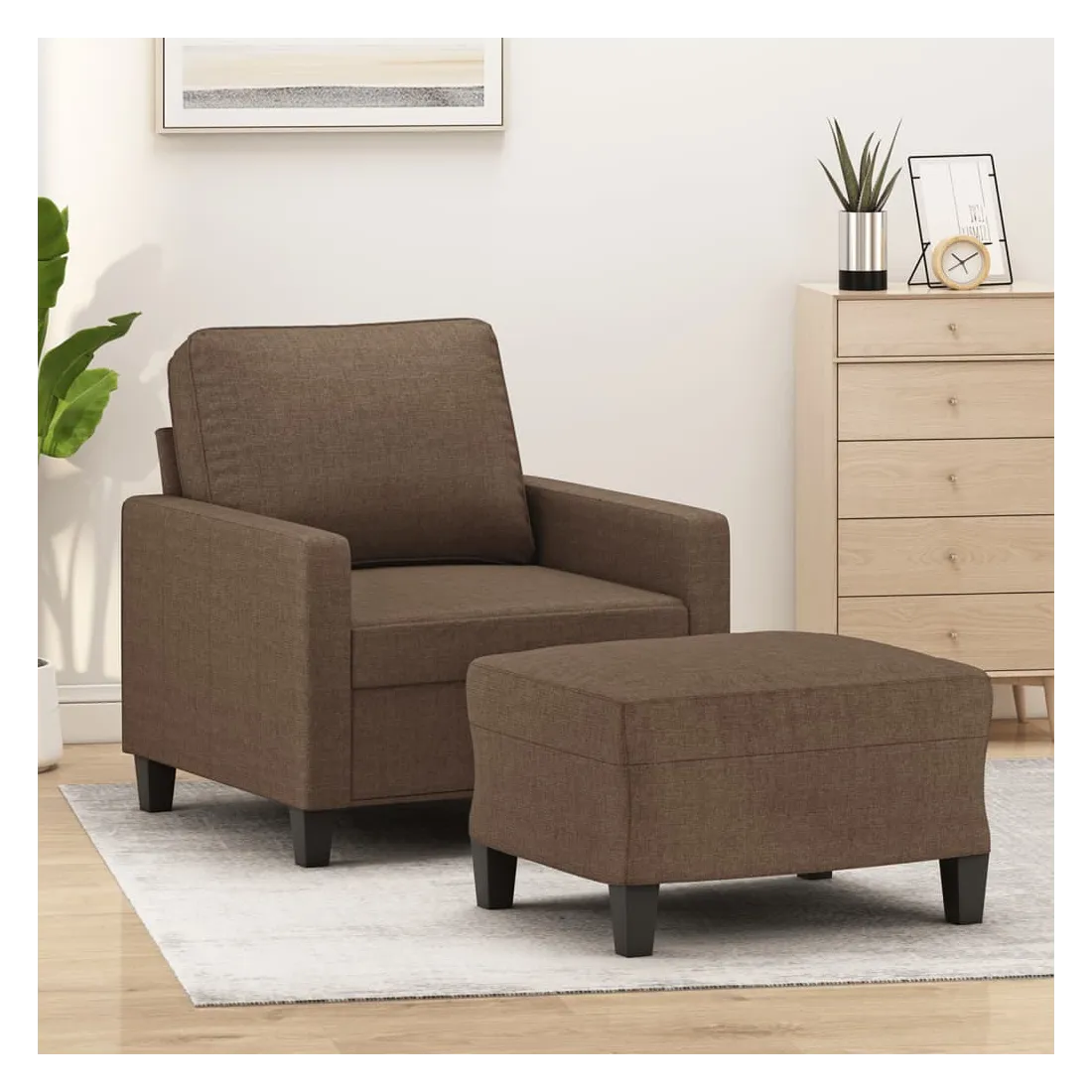 Ce fauteuil avec repose-pied est un excellent endroit pour discuter, lire, regarder la télévision ou simplement vous détendre. Il est destiné à être un point central de votre maison. Tissu durable : le tissu présente un aspect simple et épuré tout en restant respirant et durable.Structure robuste et stable : la structure en contreplaqué et en métal du canapé avec repose-pieds assure robustesse et stabilité.Expérience d'assise confortable : le fauteuil est très confortable avec le siège, les accoudoirs et le coussin de dossier bien rembourrés.Repose-pied polyvalent : ce repose-pied convient pour reposer vos pieds lorsque vous êtes allongé dans un canapé ou un fauteuil inclinable, ou pour vous offrir un siège supplémentaire dans votre pièce. De plus, le design simple et la taille compacte le rendent idéal pour presque tous vos espaces de vie.Design accrocheur : doté d'un design simple mais moderne, ce canapé avec repose-pied est destiné à attirer l'attention dans votre pièce.