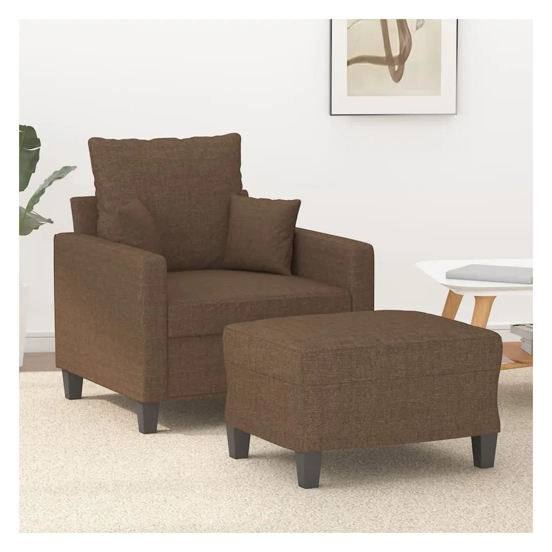 Ce fauteuil avec repose-pied est un excellent endroit pour discuter, lire, regarder la télévision ou simplement vous détendre. Il est destiné à être un point central de votre maison. Tissu durable : le tissu présente un aspect simple et épuré tout en restant respirant et durable.Structure robuste et stable : la structure en contreplaqué et en métal du canapé avec repose-pieds assure robustesse et stabilité.Expérience d'assise confortable : le fauteuil est très confortable avec le siège, les accoudoirs et le coussin de dossier bien rembourrés.Repose-pied polyvalent : ce repose-pied convient pour reposer vos pieds lorsque vous êtes allongé dans un canapé ou un fauteuil inclinable, ou pour vous offrir un siège supplémentaire dans votre pièce. De plus, le design simple et la taille compacte le rendent idéal pour presque tous vos espaces de vie.Design accrocheur : doté d'un design simple mais moderne, ce canapé avec repose-pied est destiné à attirer l'attention dans votre pièce.