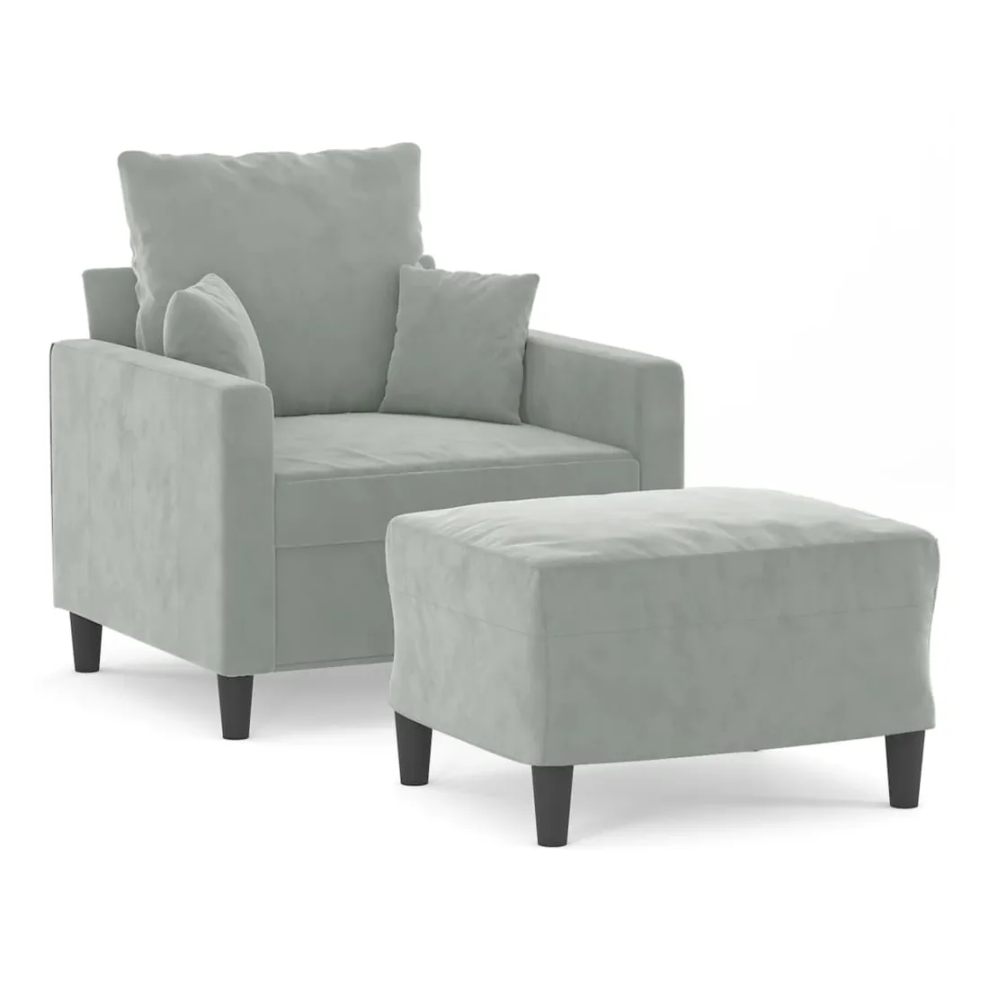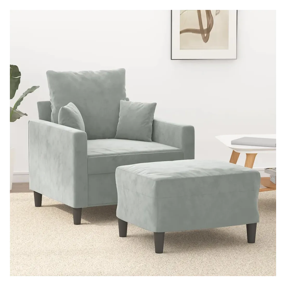 Ce fauteuil avec repose-pied est un excellent endroit pour discuter, lire, regarder la télévision ou simplement vous détendre. Il est destiné à être un point central de votre maison. Velours durable : le velours est un tissu doux et confortable, agréable au toucher.Structure robuste et stable : la structure en contreplaqué et en métal du canapé avec repose-pieds assure robustesse et stabilité.Expérience d'assise confortable : le fauteuil est très confortable avec le siège, les accoudoirs et le coussin de dossier bien rembourrés.Repose-pied polyvalent : ce repose-pied convient pour reposer vos pieds lorsque vous êtes allongé dans un canapé ou un fauteuil inclinable, ou pour vous offrir un siège supplémentaire dans votre pièce. De plus, le design simple et la taille compacte le rendent idéal pour presque tous vos espaces de vie.Design accrocheur : doté d'un design simple mais moderne, ce canapé avec repose-pied est destiné à attirer l'attention dans votre pièce.