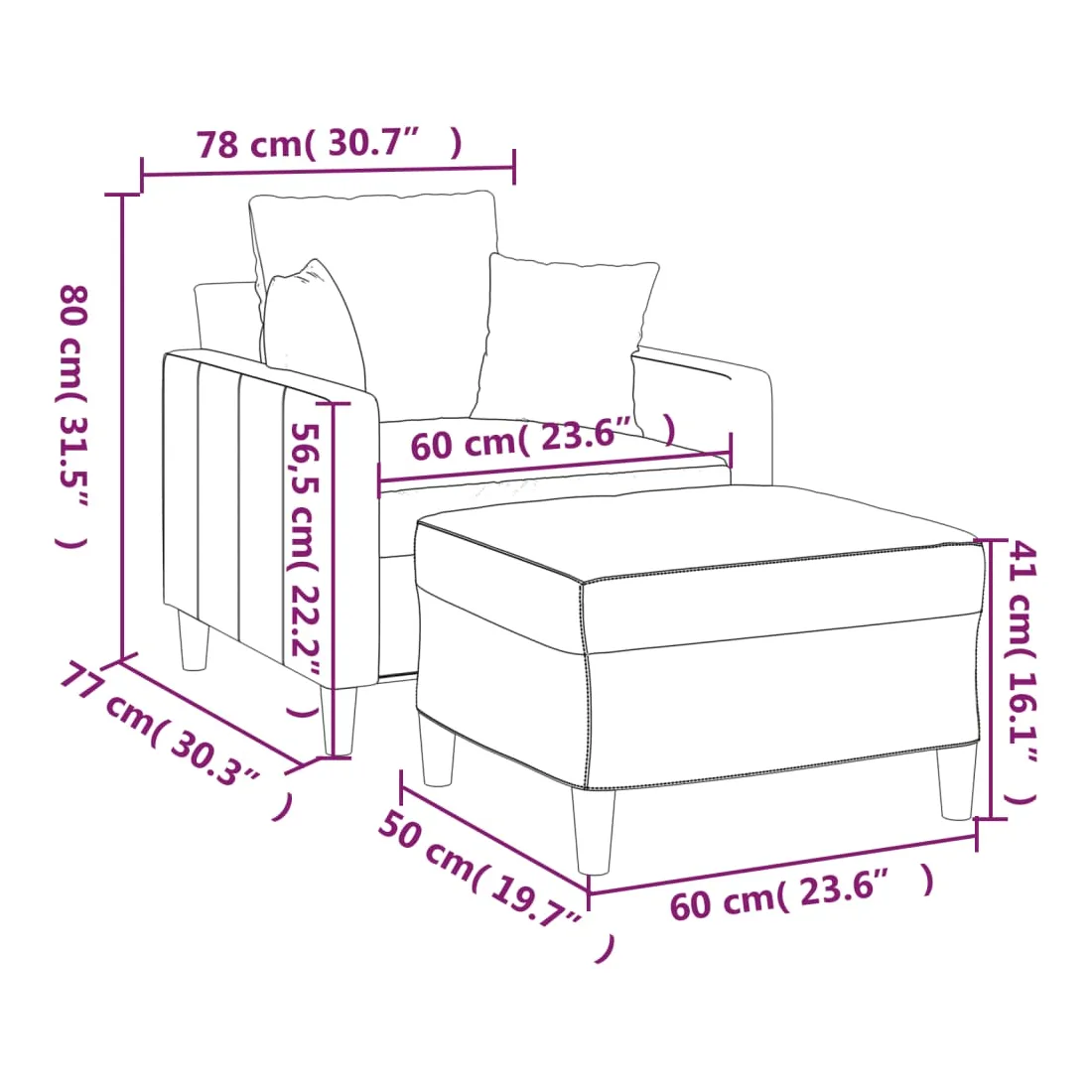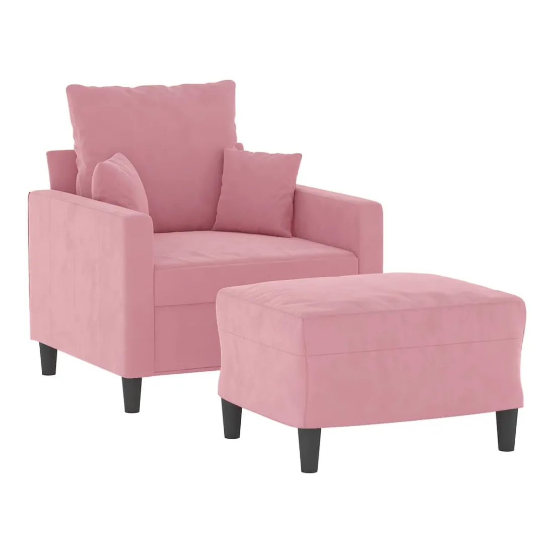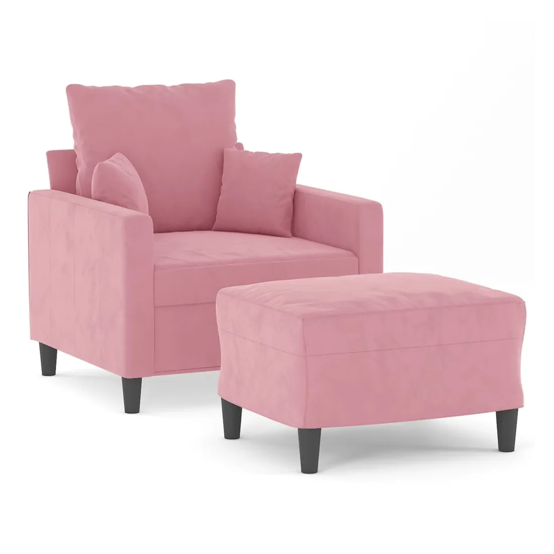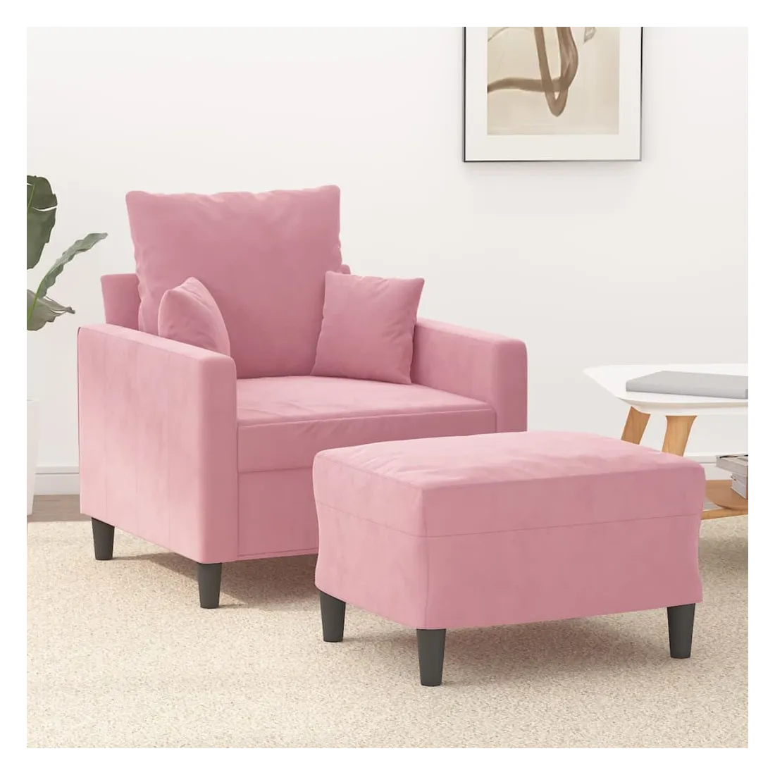Ce fauteuil avec repose-pied est un excellent endroit pour discuter, lire, regarder la télévision ou simplement vous détendre. Il est destiné à être un point central de votre maison. Velours durable : le velours est un tissu doux et confortable, agréable au toucher.Structure robuste et stable : la structure en contreplaqué et en métal du canapé avec repose-pieds assure robustesse et stabilité.Expérience d'assise confortable : le fauteuil est très confortable avec le siège, les accoudoirs et le coussin de dossier bien rembourrés.Repose-pied polyvalent : ce repose-pied convient pour reposer vos pieds lorsque vous êtes allongé dans un canapé ou un fauteuil inclinable, ou pour vous offrir un siège supplémentaire dans votre pièce. De plus, le design simple et la taille compacte le rendent idéal pour presque tous vos espaces de vie.Design accrocheur : doté d'un design simple mais moderne, ce canapé avec repose-pied est destiné à attirer l'attention dans votre pièce.