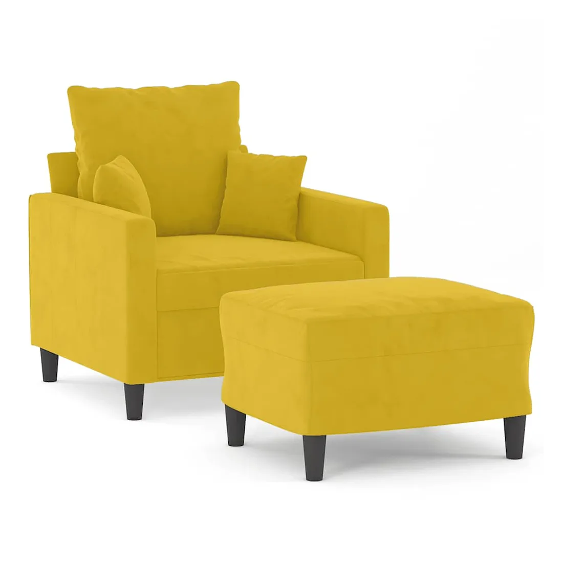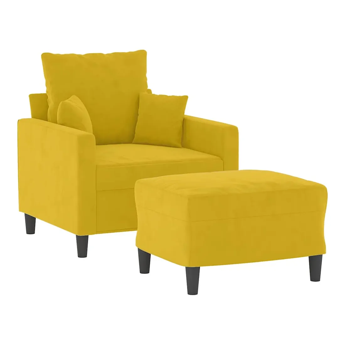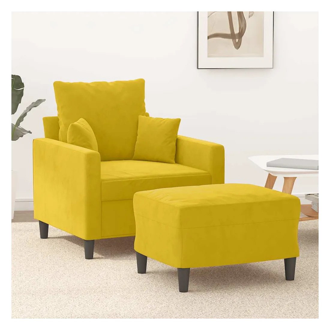 Ce fauteuil avec repose-pied est un excellent endroit pour discuter, lire, regarder la télévision ou simplement vous détendre. Il est destiné à être un point central de votre maison. Velours durable : le velours est un tissu doux et confortable, agréable au toucher.Structure robuste et stable : la structure en contreplaqué et en métal du canapé avec repose-pieds assure robustesse et stabilité.Expérience d'assise confortable : le fauteuil est très confortable avec le siège, les accoudoirs et le coussin de dossier bien rembourrés.Repose-pied polyvalent : ce repose-pied convient pour reposer vos pieds lorsque vous êtes allongé dans un canapé ou un fauteuil inclinable, ou pour vous offrir un siège supplémentaire dans votre pièce. De plus, le design simple et la taille compacte le rendent idéal pour presque tous vos espaces de vie.Design accrocheur : doté d'un design simple mais moderne, ce canapé avec repose-pied est destiné à attirer l'attention dans votre pièce.