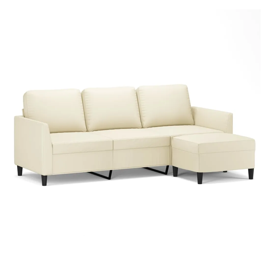 Ce canapé à 3 places avec repose-pieds est un excellent endroit pour discuter, lire, regarder la télévision ou simplement vous détendre. Il est destiné à être un point central dans votre maison. Similicuir durable : le similicuir de qualité supérieure est un matériau très durable. Il est résistant aux taches, ce qui le rend facile à nettoyer avec un chiffon humide. La surface lisse donne également un aspect luxueux et la beauté du cuir véritable.Structure robuste et stable : la structure en contreplaqué et en métal du canapé avec repose-pieds assure robustesse et stabilité.Expérience d'assise confortable : le fauteuil est très confortable avec les sièges, les accoudoirs et les coussins de dossier bien rembourrés.Repose-pied polyvalent : ce repose-pied convient pour reposer vos pieds lorsque vous êtes allongé dans un canapé ou un fauteuil inclinable, ou pour vous offrir un siège supplémentaire dans votre pièce. De plus, le design simple et la taille compacte le rendent idéal pour presque tous vos espaces de vie.Design accrocheur : doté d'un design simple mais moderne, ce canapé avec repose-pied est destiné à attirer l'attention dans votre pièce.