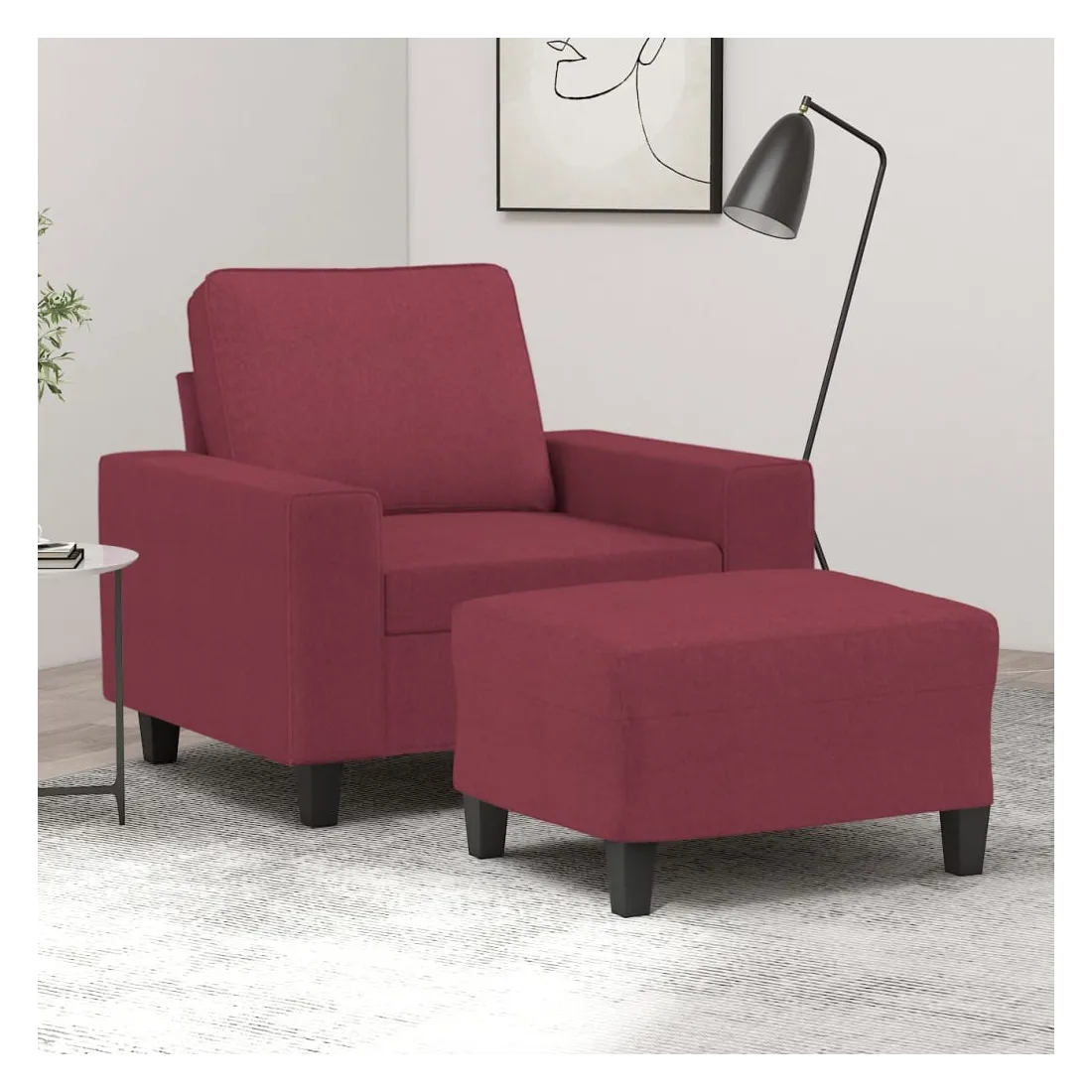 Ce fauteuil avec repose-pied est un excellent endroit pour discuter, lire, regarder la télévision ou simplement vous détendre. Il est destiné à être un point central de votre maison. Tissu durable : le tissu présente un aspect simple et épuré tout en restant respirant et durable.Structure robuste et stable : la structure en contreplaqué et en métal du canapé avec repose-pieds assure robustesse et stabilité.Expérience d'assise confortable : le fauteuil est très confortable avec le siège, les accoudoirs et le coussin de dossier bien rembourrés.Repose-pied polyvalent : ce repose-pied convient pour reposer vos pieds lorsque vous êtes allongé dans un canapé ou un fauteuil inclinable, ou pour vous offrir un siège supplémentaire dans votre pièce. De plus, le design simple et la taille compacte le rendent idéal pour presque tous vos espaces de vie.Design accrocheur : doté d'un design simple mais moderne, ce canapé avec repose-pied est destiné à attirer l'attention dans votre pièce.