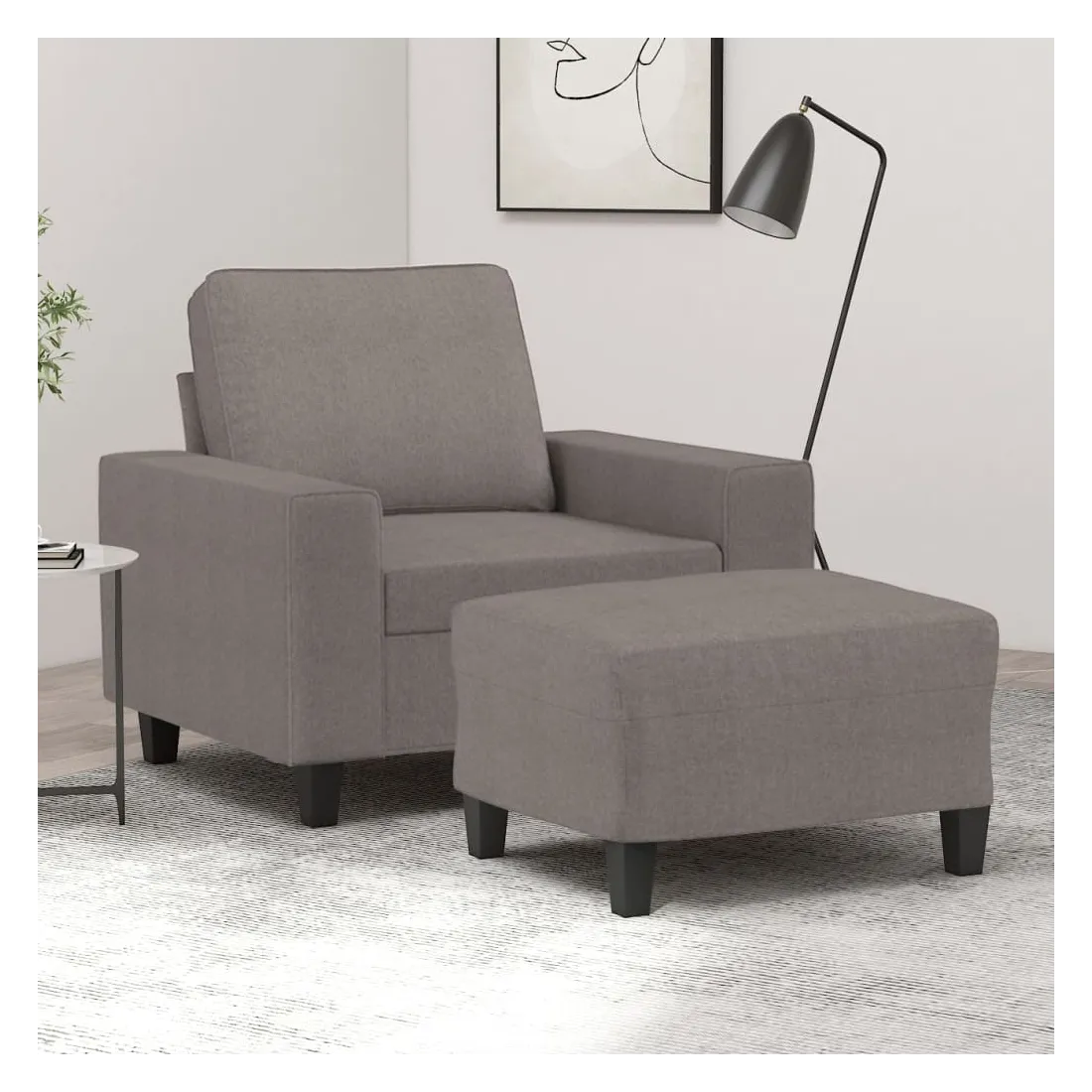 Ce fauteuil avec repose-pied est un excellent endroit pour discuter, lire, regarder la télévision ou simplement vous détendre. Il est destiné à être un point central de votre maison. Tissu durable : le tissu présente un aspect simple et épuré tout en restant respirant et durable.Structure robuste et stable : la structure en contreplaqué et en métal du canapé avec repose-pieds assure robustesse et stabilité.Expérience d'assise confortable : le fauteuil est très confortable avec le siège, les accoudoirs et le coussin de dossier bien rembourrés.Repose-pied polyvalent : ce repose-pied convient pour reposer vos pieds lorsque vous êtes allongé dans un canapé ou un fauteuil inclinable, ou pour vous offrir un siège supplémentaire dans votre pièce. De plus, le design simple et la taille compacte le rendent idéal pour presque tous vos espaces de vie.Design accrocheur : doté d'un design simple mais moderne, ce canapé avec repose-pied est destiné à attirer l'attention dans votre pièce.