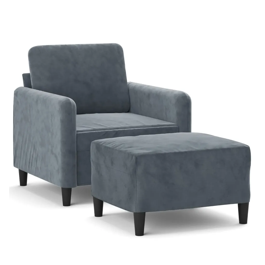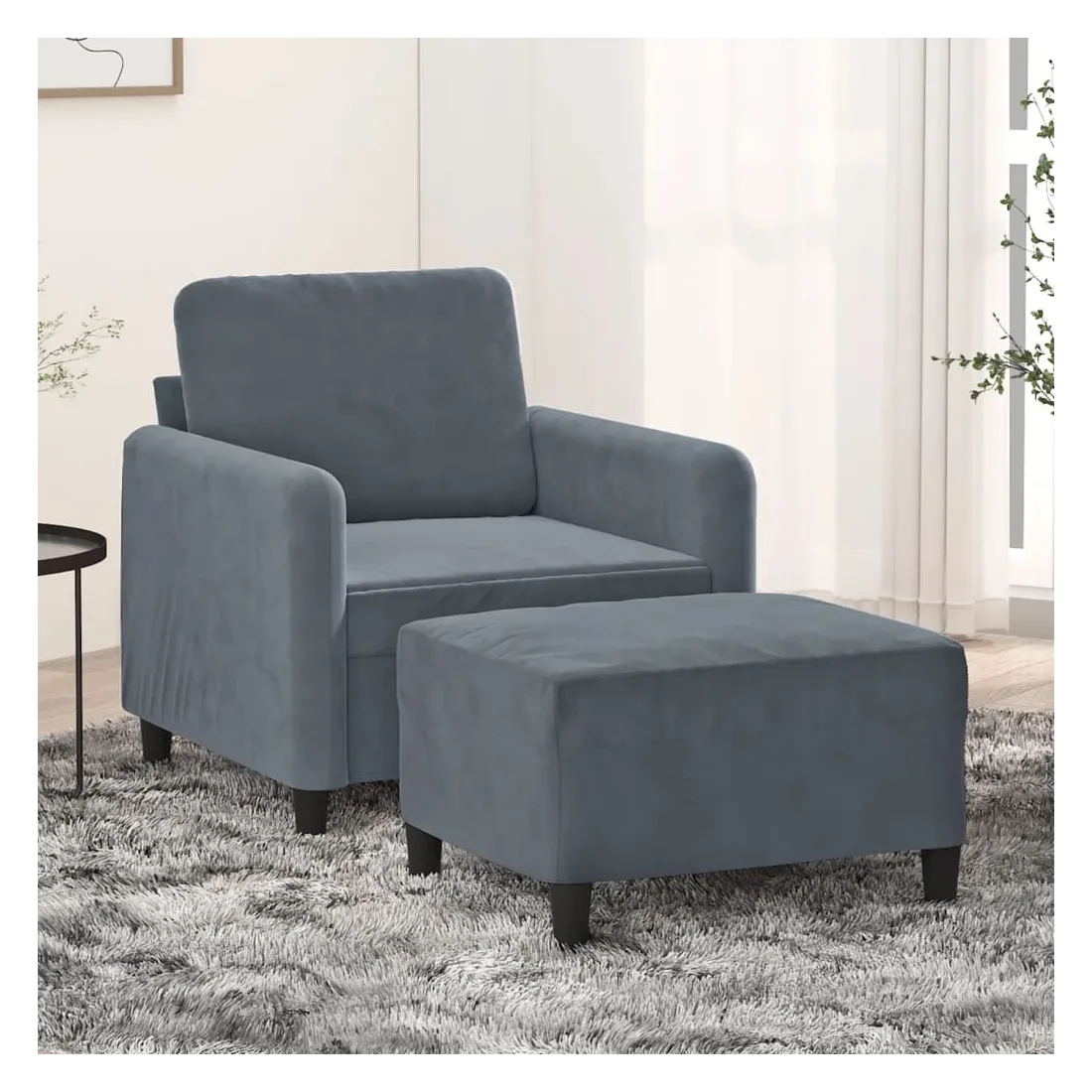 Ce fauteuil avec repose-pied est un excellent endroit pour discuter, lire, regarder la télévision ou simplement vous détendre. Il est destiné à être un point central de votre maison. Velours durable : le velours est un tissu doux et confortable, agréable au toucher.Structure robuste et stable : la structure en contreplaqué et en métal du canapé avec repose-pieds assure robustesse et stabilité.Expérience d'assise confortable : le fauteuil est très confortable avec le siège, les accoudoirs et le coussin de dossier bien rembourrés.Repose-pied polyvalent : ce repose-pied convient pour reposer vos pieds lorsque vous êtes allongé dans un canapé ou un fauteuil inclinable, ou pour vous offrir un siège supplémentaire dans votre pièce. De plus, le design simple et la taille compacte le rendent idéal pour presque tous vos espaces de vie.Design accrocheur : doté d'un design simple mais moderne, ce canapé avec repose-pied est destiné à attirer l'attention dans votre pièce.