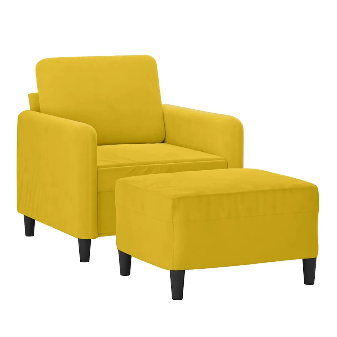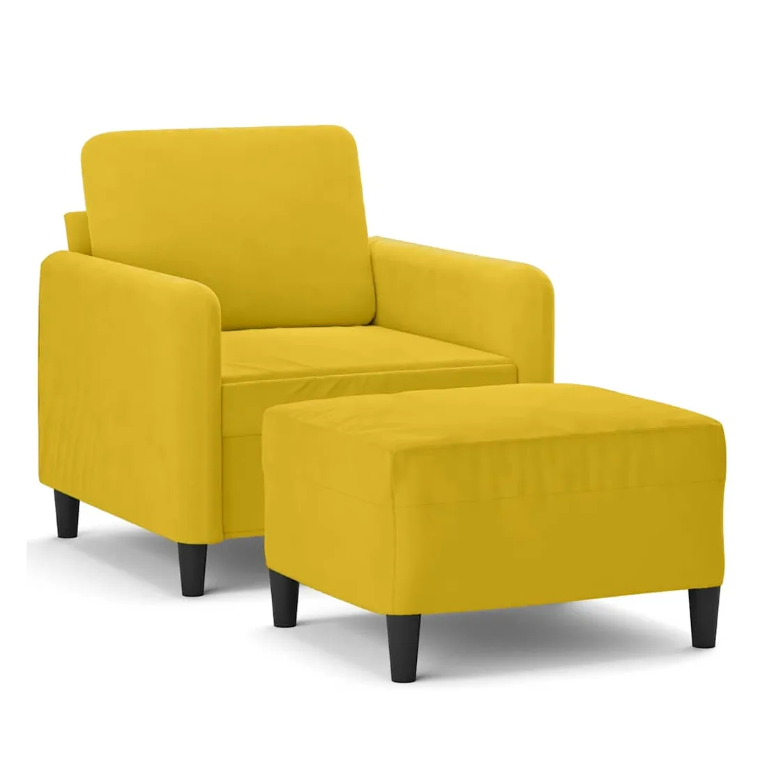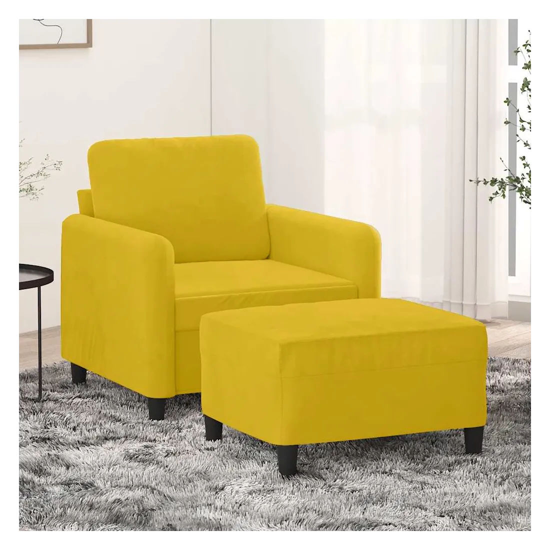 Ce fauteuil avec repose-pied est un excellent endroit pour discuter, lire, regarder la télévision ou simplement vous détendre. Il est destiné à être un point central de votre maison. Velours durable : le velours est un tissu doux et confortable, agréable au toucher.Structure robuste et stable : la structure en contreplaqué et en métal du canapé avec repose-pieds assure robustesse et stabilité.Expérience d'assise confortable : le fauteuil est très confortable avec le siège, les accoudoirs et le coussin de dossier bien rembourrés.Repose-pied polyvalent : ce repose-pied convient pour reposer vos pieds lorsque vous êtes allongé dans un canapé ou un fauteuil inclinable, ou pour vous offrir un siège supplémentaire dans votre pièce. De plus, le design simple et la taille compacte le rendent idéal pour presque tous vos espaces de vie.Design accrocheur : doté d'un design simple mais moderne, ce canapé avec repose-pied est destiné à attirer l'attention dans votre pièce.
