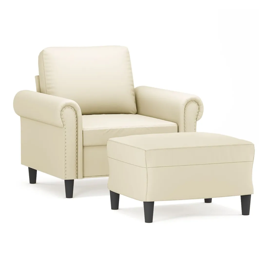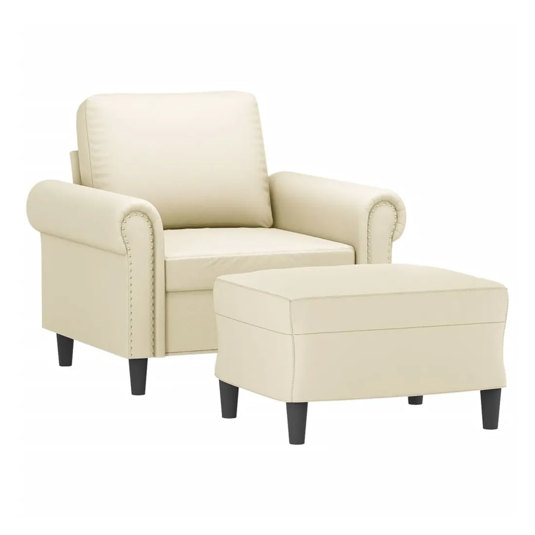 Ce fauteuil avec repose-pied est un excellent endroit pour discuter, lire, regarder la télévision ou simplement vous détendre. Il est destiné à être un point central de votre maison. Similicuir durable : le similicuir de qualité supérieure est un matériau très durable. Il est résistant aux taches, ce qui le rend facile à nettoyer avec un chiffon humide. La surface lisse donne également un aspect luxueux et la beauté du cuir véritable.Structure robuste et stable : la structure en contreplaqué et en métal du canapé avec repose-pieds assure robustesse et stabilité.Expérience d'assise confortable : le fauteuil est très confortable avec le siège, les accoudoirs et le coussin de dossier bien rembourrés.Repose-pied polyvalent : ce repose-pied convient pour reposer vos pieds lorsque vous êtes allongé dans un canapé ou un fauteuil inclinable, ou pour vous offrir un siège supplémentaire dans votre pièce. De plus, le design simple et la taille compacte le rendent idéal pour presque tous vos espaces de vie.Design accrocheur : doté d'un design simple mais moderne, ce canapé avec repose-pied est destiné à attirer l'attention dans votre pièce.