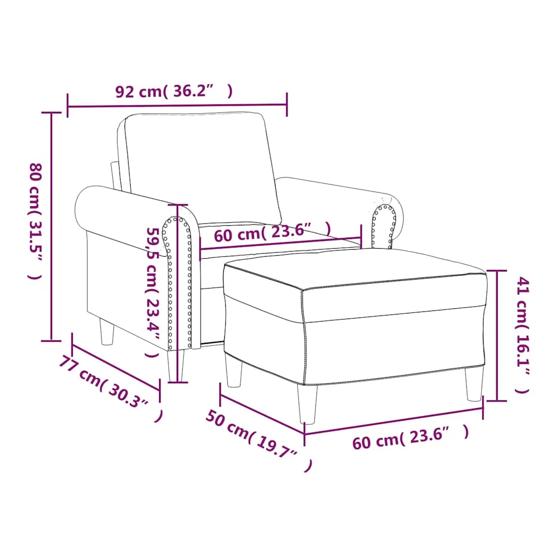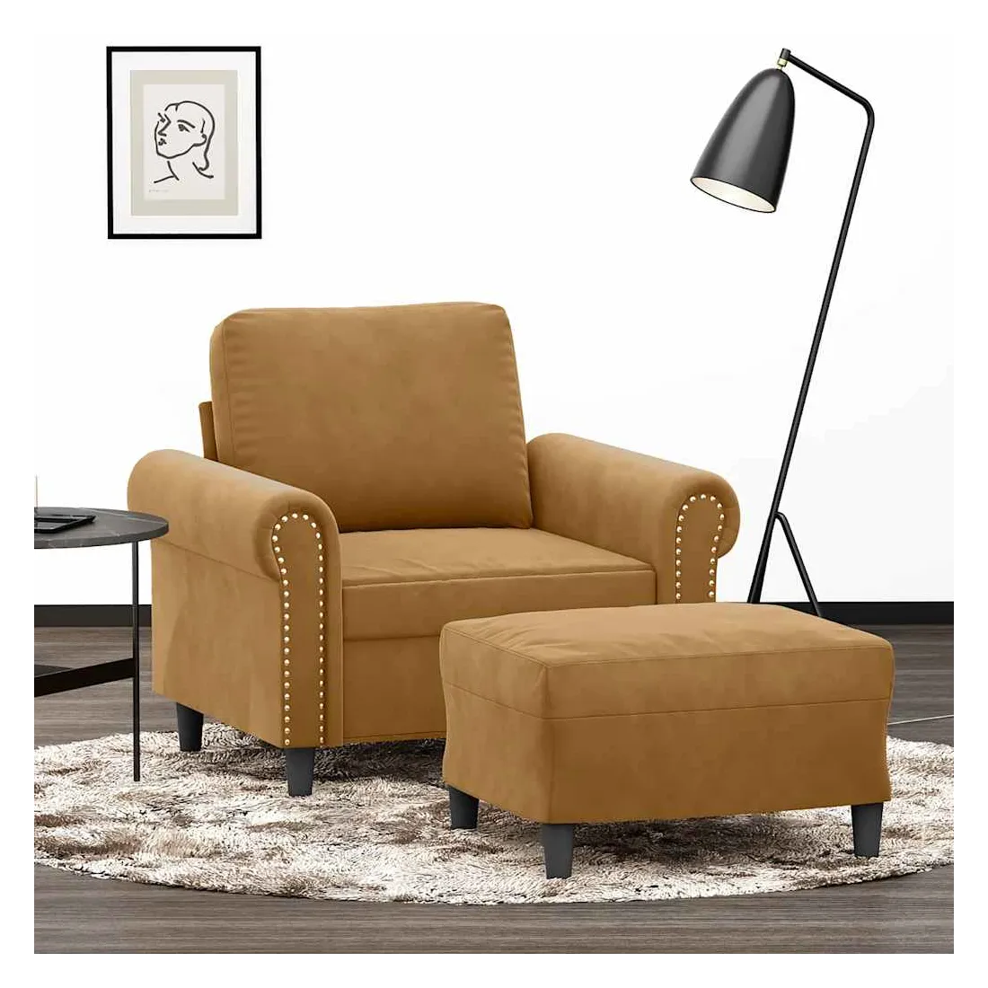 Ce fauteuil avec repose-pied est un excellent endroit pour discuter, lire, regarder la télévision ou simplement vous détendre. Il est destiné à être un point central de votre maison. Velours durable : le velours est un tissu doux et confortable, agréable au toucher.Structure robuste et stable : la structure en contreplaqué et en métal du canapé avec repose-pieds assure robustesse et stabilité.Expérience d'assise confortable : le fauteuil est très confortable avec le siège, les accoudoirs et le coussin de dossier bien rembourrés.Repose-pied polyvalent : ce repose-pied convient pour reposer vos pieds lorsque vous êtes allongé dans un canapé ou un fauteuil inclinable, ou pour vous offrir un siège supplémentaire dans votre pièce. De plus, le design simple et la taille compacte le rendent idéal pour presque tous vos espaces de vie.Design accrocheur : doté d'un design simple mais moderne, ce canapé avec repose-pied est destiné à attirer l'attention dans votre pièce.