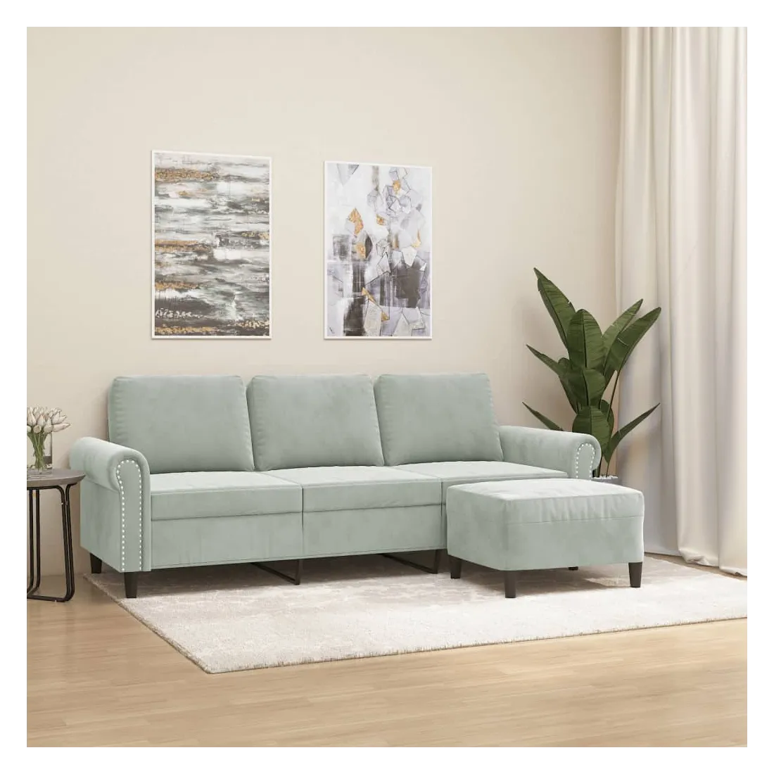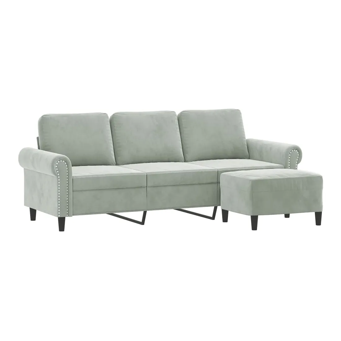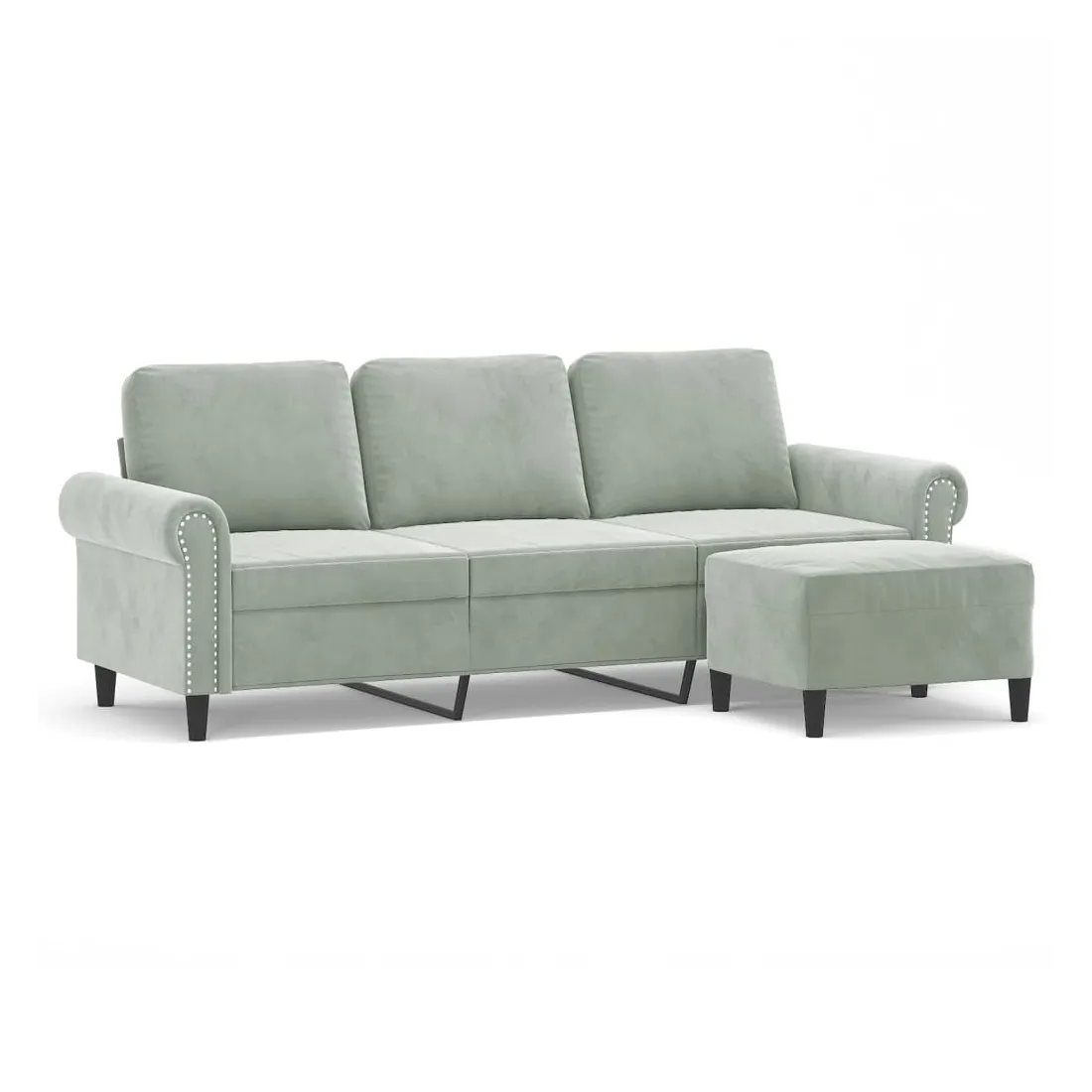 Ce canapé à 3 places avec repose-pieds est un excellent endroit pour discuter, lire, regarder la télévision ou simplement vous détendre. Il est destiné à être un point central dans votre maison. Velours durable : le velours est un tissu doux et confortable, agréable au toucher.Structure robuste et stable : la structure en contreplaqué et en métal du canapé avec repose-pieds assure robustesse et stabilité.Expérience d'assise confortable : le fauteuil est très confortable avec les sièges, les accoudoirs et les coussins de dossier bien rembourrés.Repose-pied polyvalent : ce repose-pied convient pour reposer vos pieds lorsque vous êtes allongé dans un canapé ou un fauteuil inclinable, ou pour vous offrir un siège supplémentaire dans votre pièce. De plus, le design simple et la taille compacte le rendent idéal pour presque tous vos espaces de vie.Design accrocheur : doté d'un design simple mais moderne, ce canapé avec repose-pied est destiné à attirer l'attention dans votre pièce.