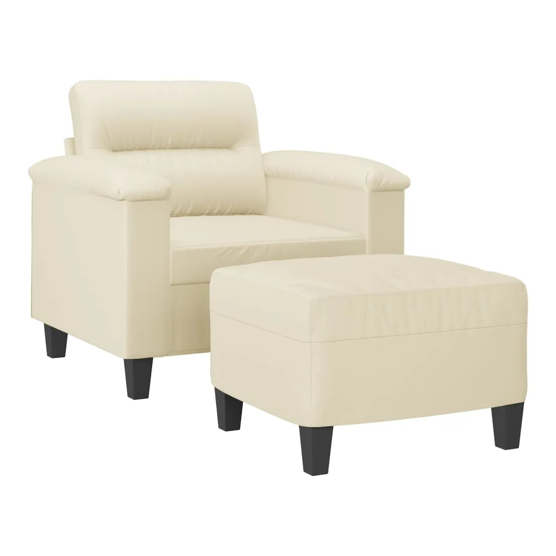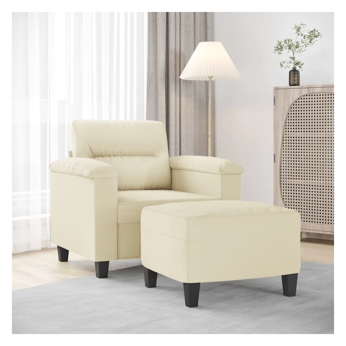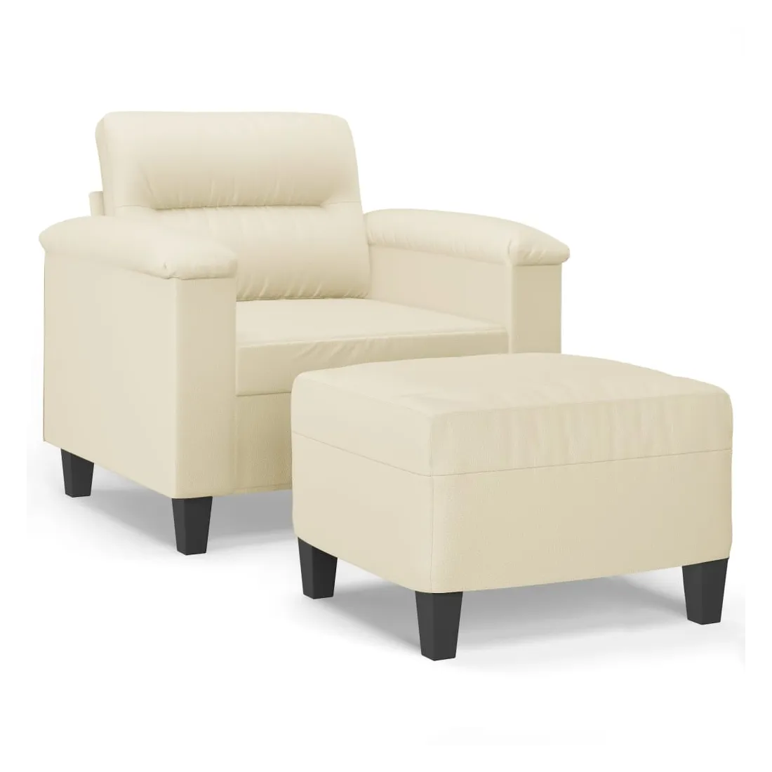Ce fauteuil avec repose-pied est un excellent endroit pour discuter, lire, regarder la télévision ou simplement vous détendre. Il est destiné à être un point central de votre maison. Similicuir durable : le similicuir de qualité supérieure est un matériau très durable. Il est résistant aux taches, ce qui le rend facile à nettoyer avec un chiffon humide. La surface lisse donne également un aspect luxueux et la beauté du cuir véritable.Structure robuste et stable : la structure en contreplaqué et en métal du canapé avec repose-pieds assure robustesse et stabilité.Expérience d'assise confortable : le fauteuil est très confortable avec le siège, les accoudoirs et le coussin de dossier bien rembourrés.Repose-pied polyvalent : ce repose-pied convient pour reposer vos pieds lorsque vous êtes allongé dans un canapé ou un fauteuil inclinable, ou pour vous offrir un siège supplémentaire dans votre pièce. De plus, le design simple et la taille compacte le rendent idéal pour presque tous vos espaces de vie.Design accrocheur : doté d'un design simple mais moderne, ce canapé avec repose-pied est destiné à attirer l'attention dans votre pièce.