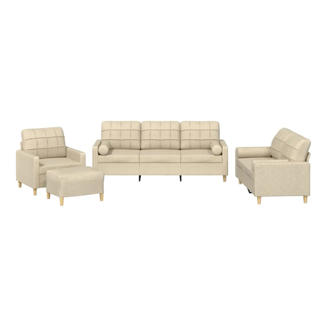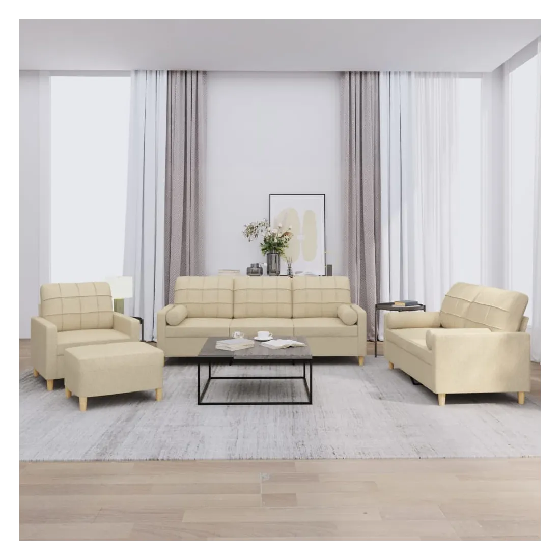 Cet ensemble de canapés est un excellent endroit pour discuter, lire, regarder la télévision ou simplement vous détendre. Il est destiné à être un point central de votre maison. Tissu durable : le tissu présente un aspect simple et épuré tout en restant respirant et durable.Structure robuste et stable : la structure en contreplaqué et en métal du canapé assure robustesse et stabilité.Expérience d'assise confortable : le canapé est très confortable avec le siège, les accoudoirs et les oreillers de dossier bien rembourrés.Oreillers cylindriques pratiques : ces oreillers cylindriques non seulement embellissent votre décor, mais ils peuvent également apporter un confort supplémentaire lorsque vous êtes assis ou allongé.Pouf polyvalent : ce repose-pied convient pour reposer vos pieds lorsque vous êtes allongé dans un canapé, ou pour vous offrir un siège supplémentaire dans votre pièce. De plus, le design simple et la taille compacte le rendent idéal pour presque tous vos espaces de vie.