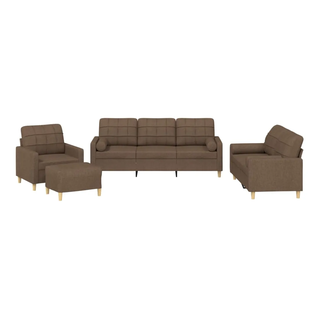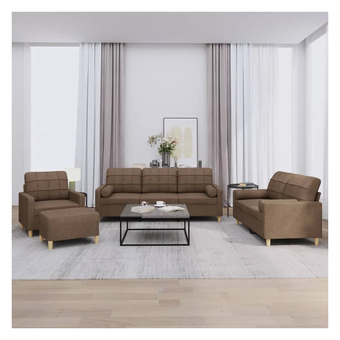 Cet ensemble de canapés est un excellent endroit pour discuter, lire, regarder la télévision ou simplement vous détendre. Il est destiné à être un point central de votre maison. Tissu durable : le tissu présente un aspect simple et épuré tout en restant respirant et durable.Structure robuste et stable : la structure en contreplaqué et en métal du canapé assure robustesse et stabilité.Expérience d'assise confortable : le canapé est très confortable avec le siège, les accoudoirs et les oreillers de dossier bien rembourrés.Oreillers cylindriques pratiques : ces oreillers cylindriques non seulement embellissent votre décor, mais ils peuvent également apporter un confort supplémentaire lorsque vous êtes assis ou allongé.Pouf polyvalent : ce repose-pied convient pour reposer vos pieds lorsque vous êtes allongé dans un canapé, ou pour vous offrir un siège supplémentaire dans votre pièce. De plus, le design simple et la taille compacte le rendent idéal pour presque tous vos espaces de vie.
