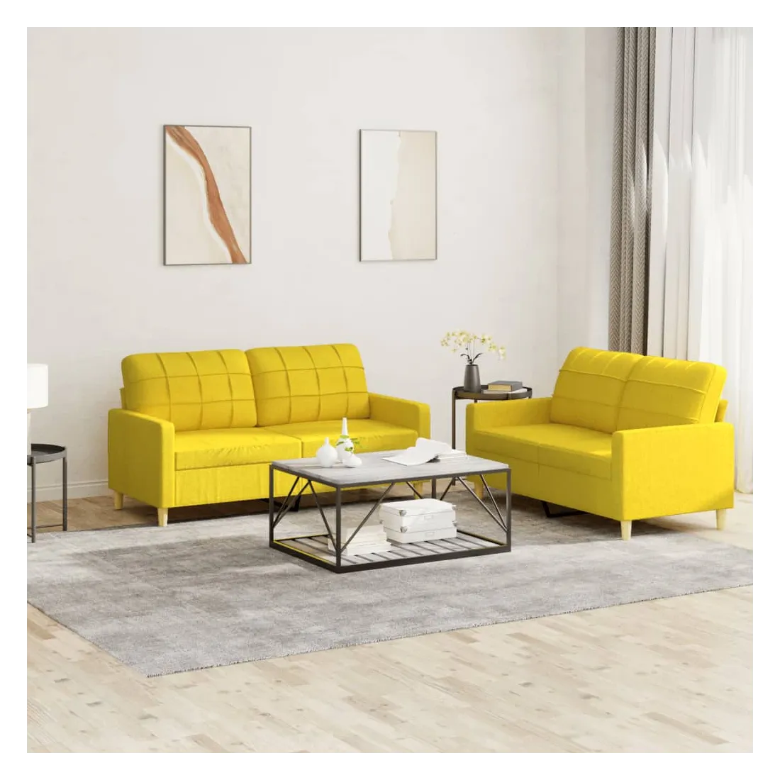 Cet ensemble de canapés est un excellent endroit pour discuter, lire, regarder la télévision ou simplement vous détendre. Il est destiné à être un point central de votre maison. Tissu durable : le tissu présente un aspect simple et épuré tout en restant respirant et durable.Structure robuste et stable : la structure en contreplaqué et en métal du canapé assure robustesse et stabilité.Expérience d'assise confortable : le canapé est très confortable avec le siège, les accoudoirs et les oreillers de dossier bien rembourrés.Design accrocheur : doté d'un design simple mais moderne, ce siège de salon est destiné à attirer l'attention dans votre pièce.