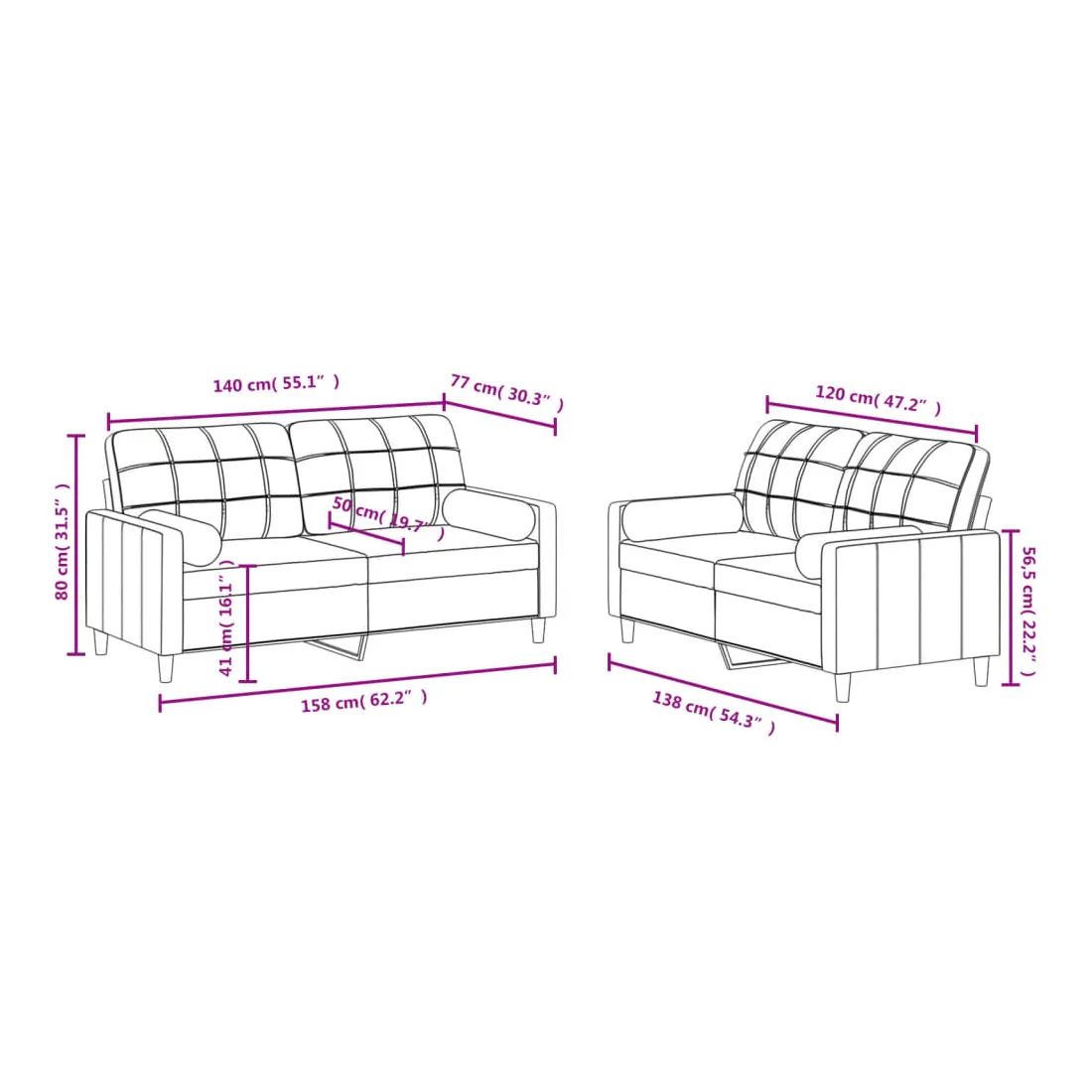 Cet ensemble de canapés est un excellent endroit pour discuter, lire, regarder la télévision ou simplement vous détendre. Il est destiné à être un point central de votre maison. Tissu durable : le tissu présente un aspect simple et épuré tout en restant respirant et durable.Structure robuste et stable : la structure en contreplaqué et en métal du canapé assure robustesse et stabilité.Expérience d'assise confortable : le canapé est très confortable avec le siège, les accoudoirs et les oreillers de dossier bien rembourrés.Oreillers cylindriques pratiques : ces oreillers cylindriques non seulement embellissent votre décor, mais ils peuvent également apporter un confort supplémentaire lorsque vous êtes assis ou allongé.