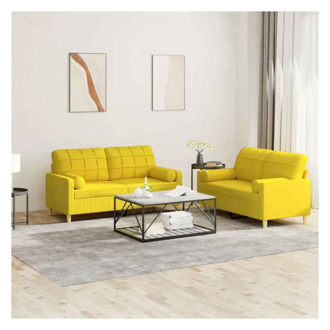 Cet ensemble de canapés est un excellent endroit pour discuter, lire, regarder la télévision ou simplement vous détendre. Il est destiné à être un point central de votre maison. Tissu durable : le tissu présente un aspect simple et épuré tout en restant respirant et durable.Structure robuste et stable : la structure en contreplaqué et en métal du canapé assure robustesse et stabilité.Expérience d'assise confortable : le canapé est très confortable avec le siège, les accoudoirs et les oreillers de dossier bien rembourrés.Oreillers cylindriques pratiques : ces oreillers cylindriques non seulement embellissent votre décor, mais ils peuvent également apporter un confort supplémentaire lorsque vous êtes assis ou allongé.