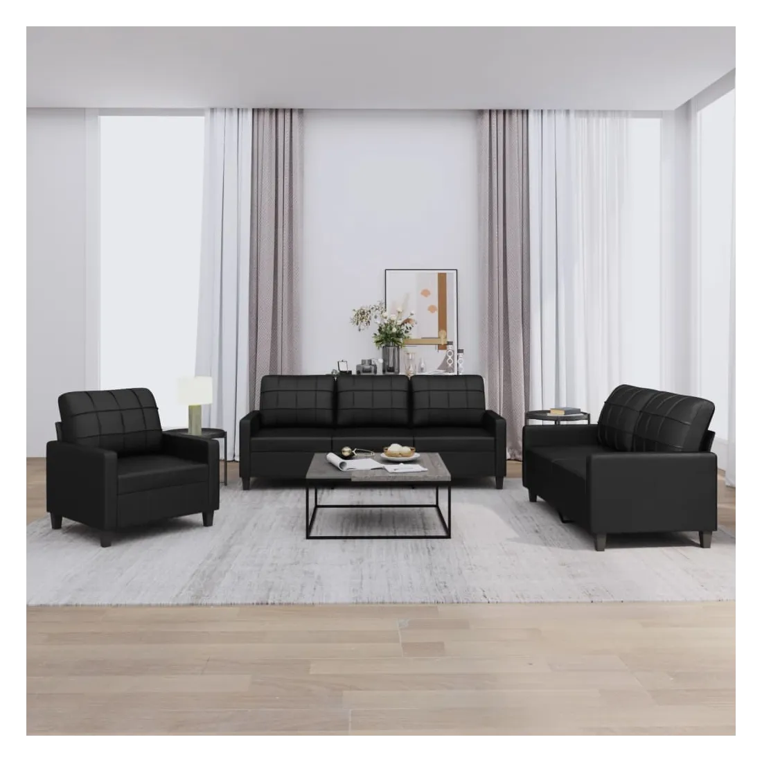 Cet ensemble de canapés est un excellent endroit pour discuter, lire, regarder la télévision ou simplement vous détendre. Il est destiné à être un point central de votre maison. Similicuir durable : le similicuir de qualité supérieure est un matériau très durable. Il est résistant aux taches, ce qui le rend facile à nettoyer avec un chiffon humide. La surface lisse donne également un aspect luxueux et la beauté du cuir véritable.Structure robuste et stable : la structure en contreplaqué et en métal du canapé assure robustesse et stabilité.Expérience d'assise confortable : le canapé est très confortable avec le siège, les accoudoirs et les oreillers de dossier bien rembourrés.Design accrocheur : doté d'un design simple mais moderne, ce siège de salon est destiné à attirer l'attention dans votre pièce.