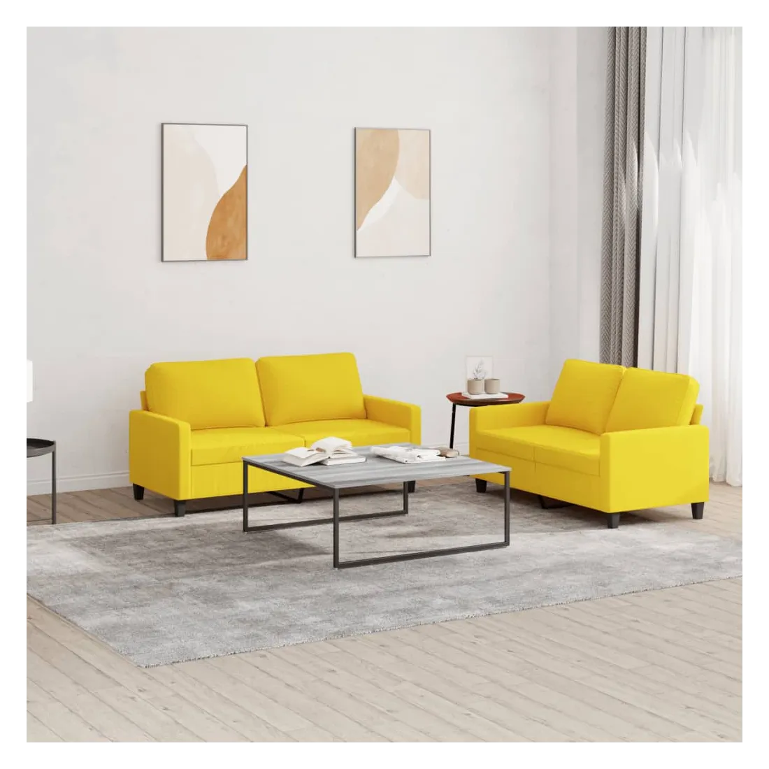 Cet ensemble de canapés est un excellent endroit pour discuter, lire, regarder la télévision ou simplement vous détendre. Il est destiné à être un point central de votre maison. Tissu durable : le tissu présente un aspect simple et épuré tout en restant respirant et durable.Structure robuste et stable : la structure en contreplaqué et en métal du canapé assure robustesse et stabilité.Expérience d'assise confortable : le canapé est très confortable grâce au siège et aux accoudoirs épais et rembourrés.