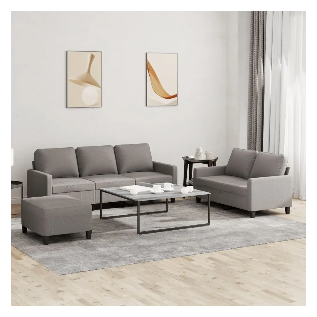 Cet ensemble de canapés est un excellent endroit pour discuter, lire, regarder la télévision ou simplement vous détendre. Il est destiné à être un point central de votre maison. Tissu durable : le tissu présente un aspect simple et épuré tout en restant respirant et durable.Structure robuste et stable : la structure en contreplaqué et en métal du canapé assure robustesse et stabilité.Expérience d'assise confortable : le canapé est très confortable grâce au siège et aux accoudoirs épais et rembourrés.Pouf polyvalent : ce repose-pied convient pour reposer vos pieds lorsque vous êtes allongé dans un canapé, ou pour vous offrir un siège supplémentaire dans votre pièce. De plus, le design simple et la taille compacte le rendent idéal pour presque tous vos espaces de vie.
