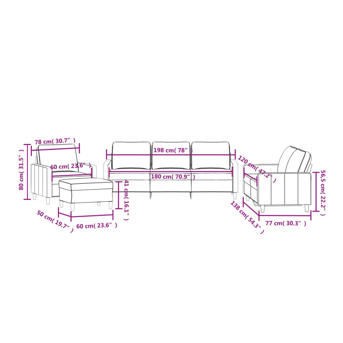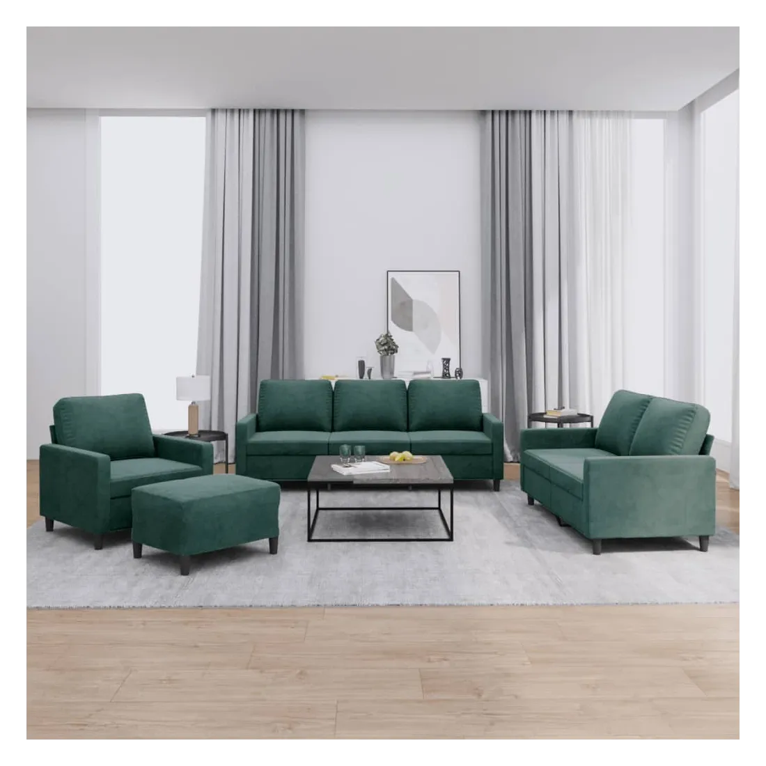 Cet ensemble de canapés est un excellent endroit pour discuter, lire, regarder la télévision ou simplement vous détendre. Il est destiné à être un point central de votre maison. Velours doux : le velours est un tissu doux et confortable, agréable au toucher.Structure robuste et stable : la structure en contreplaqué et en métal du canapé assure robustesse et stabilité.Expérience d'assise confortable : le canapé est très confortable grâce au siège et aux accoudoirs épais et rembourrés.Pouf polyvalent : ce repose-pied convient pour reposer vos pieds lorsque vous êtes allongé dans un canapé, ou pour vous offrir un siège supplémentaire dans votre pièce. De plus, le design simple et la taille compacte le rendent idéal pour presque tous vos espaces de vie.