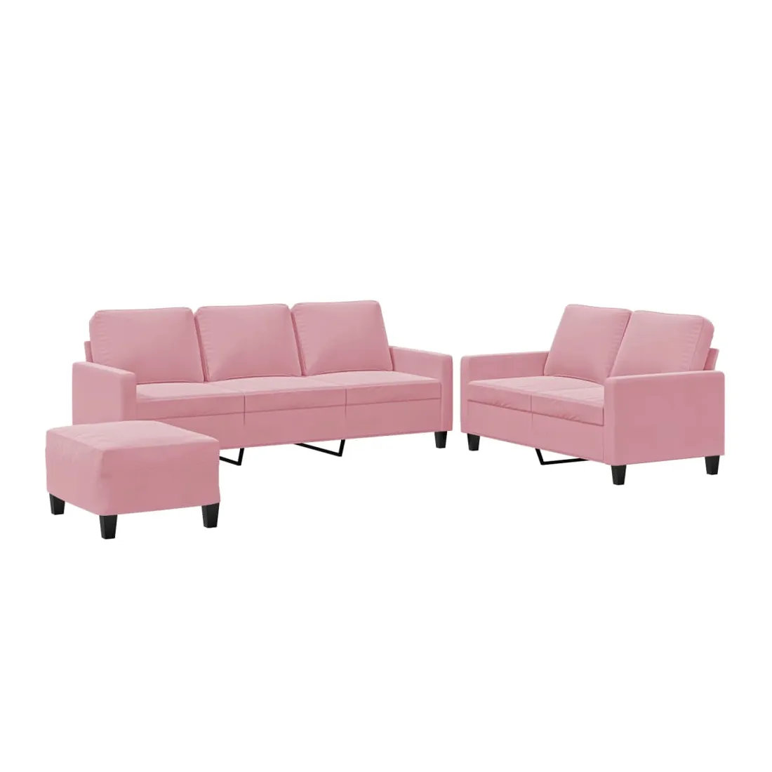 Cet ensemble de canapés est un excellent endroit pour discuter, lire, regarder la télévision ou simplement vous détendre. Il est destiné à être un point central de votre maison. Velours doux : le velours est un tissu doux et confortable, agréable au toucher.Structure robuste et stable : la structure en contreplaqué et en métal du canapé assure robustesse et stabilité.Expérience d'assise confortable : le canapé est très confortable grâce au siège et aux accoudoirs épais et rembourrés.Pouf polyvalent : ce repose-pied convient pour reposer vos pieds lorsque vous êtes allongé dans un canapé, ou pour vous offrir un siège supplémentaire dans votre pièce. De plus, le design simple et la taille compacte le rendent idéal pour presque tous vos espaces de vie.