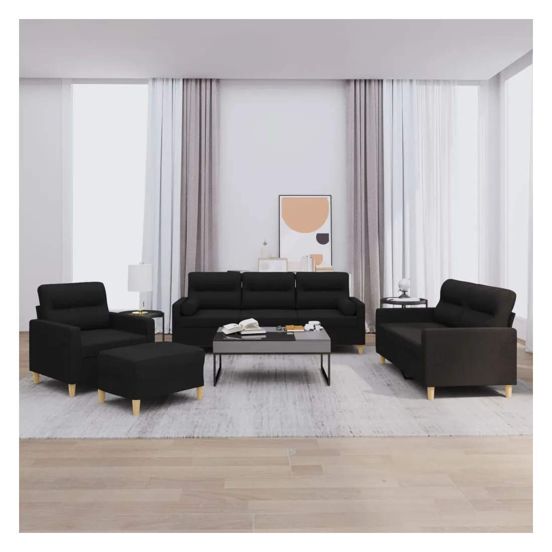 Cet ensemble de canapés est un excellent endroit pour discuter, lire, regarder la télévision ou simplement vous détendre. Il est destiné à être un point central de votre maison. Tissu durable : le tissu présente un aspect simple et épuré tout en restant respirant et durable.Structure robuste et stable : la structure en contreplaqué et en métal du canapé assure robustesse et stabilité.Expérience d'assise confortable : le canapé est très confortable avec le siège, les accoudoirs et les oreillers de dossier bien rembourrés.Oreillers cylindriques pratiques : ces oreillers cylindriques non seulement embellissent votre décor, mais ils peuvent également apporter un confort supplémentaire lorsque vous êtes assis ou allongé.Pouf polyvalent : ce repose-pied convient pour reposer vos pieds lorsque vous êtes allongé dans un canapé, ou pour vous offrir un siège supplémentaire dans votre pièce. De plus, le design simple et la taille compacte le rendent idéal pour presque tous vos espaces de vie.