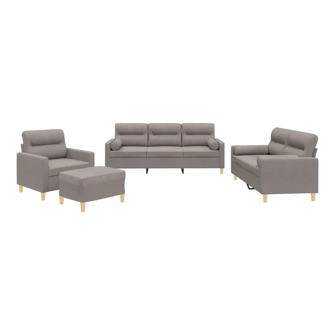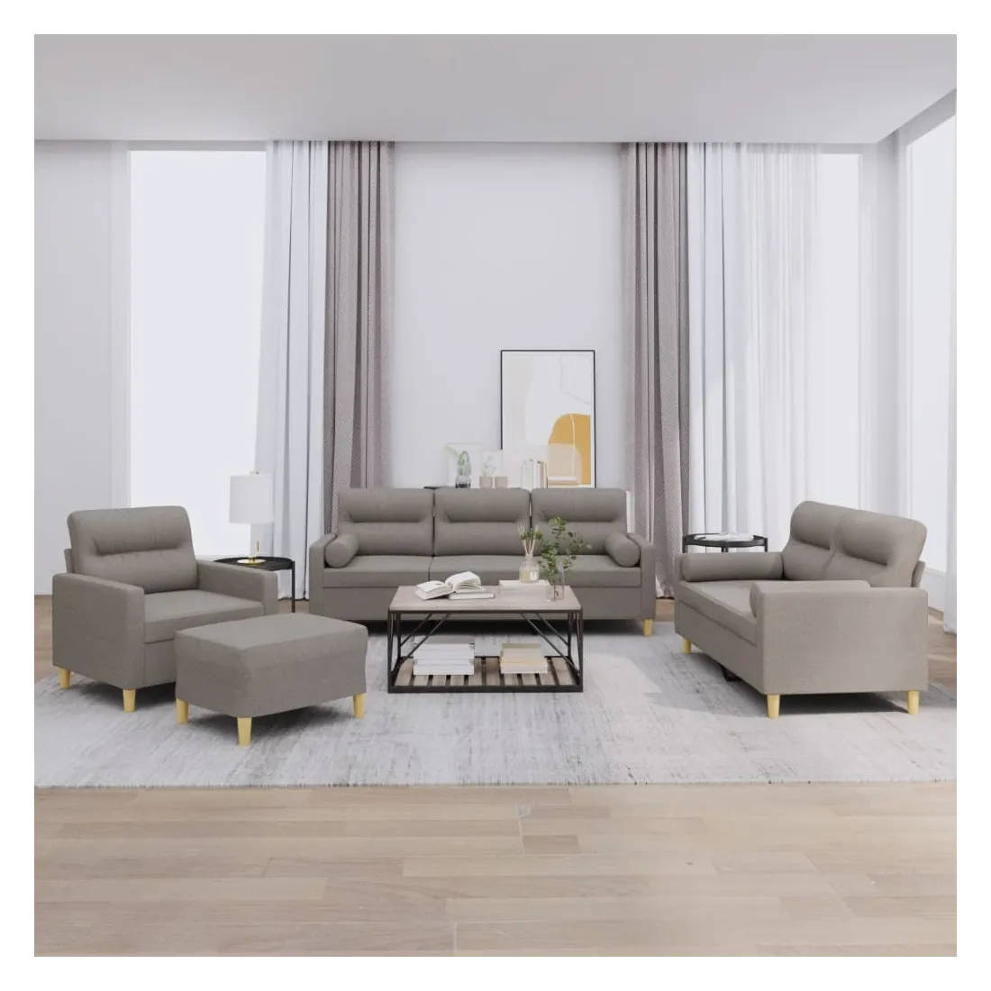 Cet ensemble de canapés est un excellent endroit pour discuter, lire, regarder la télévision ou simplement vous détendre. Il est destiné à être un point central de votre maison. Tissu durable : le tissu présente un aspect simple et épuré tout en restant respirant et durable.Structure robuste et stable : la structure en contreplaqué et en métal du canapé assure robustesse et stabilité.Expérience d'assise confortable : le canapé est très confortable avec le siège, les accoudoirs et les oreillers de dossier bien rembourrés.Oreillers cylindriques pratiques : ces oreillers cylindriques non seulement embellissent votre décor, mais ils peuvent également apporter un confort supplémentaire lorsque vous êtes assis ou allongé.Pouf polyvalent : ce repose-pied convient pour reposer vos pieds lorsque vous êtes allongé dans un canapé, ou pour vous offrir un siège supplémentaire dans votre pièce. De plus, le design simple et la taille compacte le rendent idéal pour presque tous vos espaces de vie.