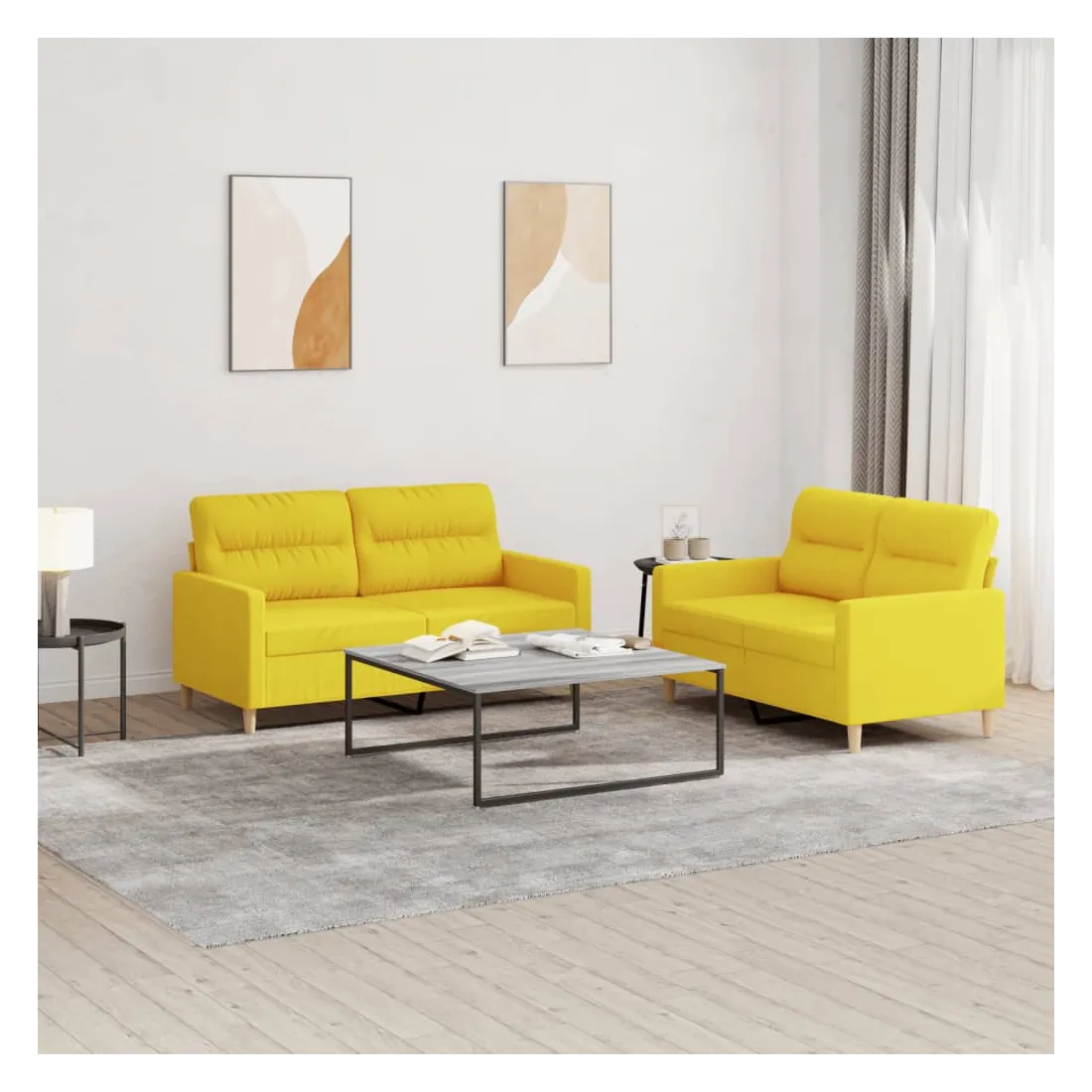 Ensemble de canapés 2 pcs avec coussins Jaune clair Tissu