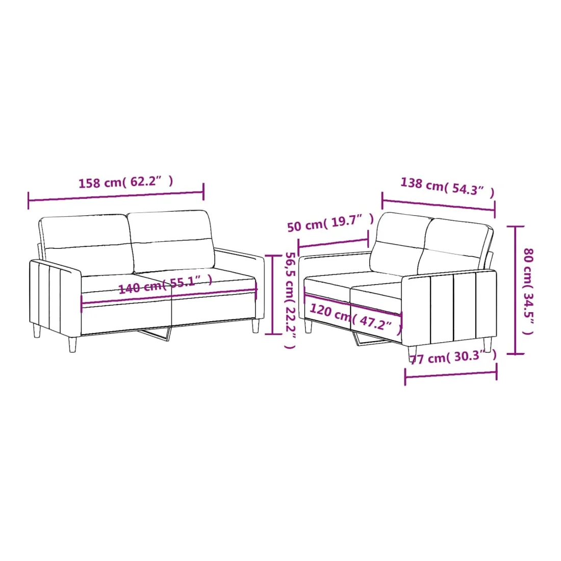 Cet ensemble de canapés est un excellent endroit pour discuter, lire, regarder la télévision ou simplement vous détendre. Il est destiné à être un point central de votre maison. Tissu durable : le tissu présente un aspect simple et épuré tout en restant respirant et durable.Structure robuste et stable : la structure en contreplaqué et en métal du canapé assure robustesse et stabilité.Expérience d'assise confortable : le canapé est très confortable grâce au siège et aux accoudoirs épais et rembourrés.